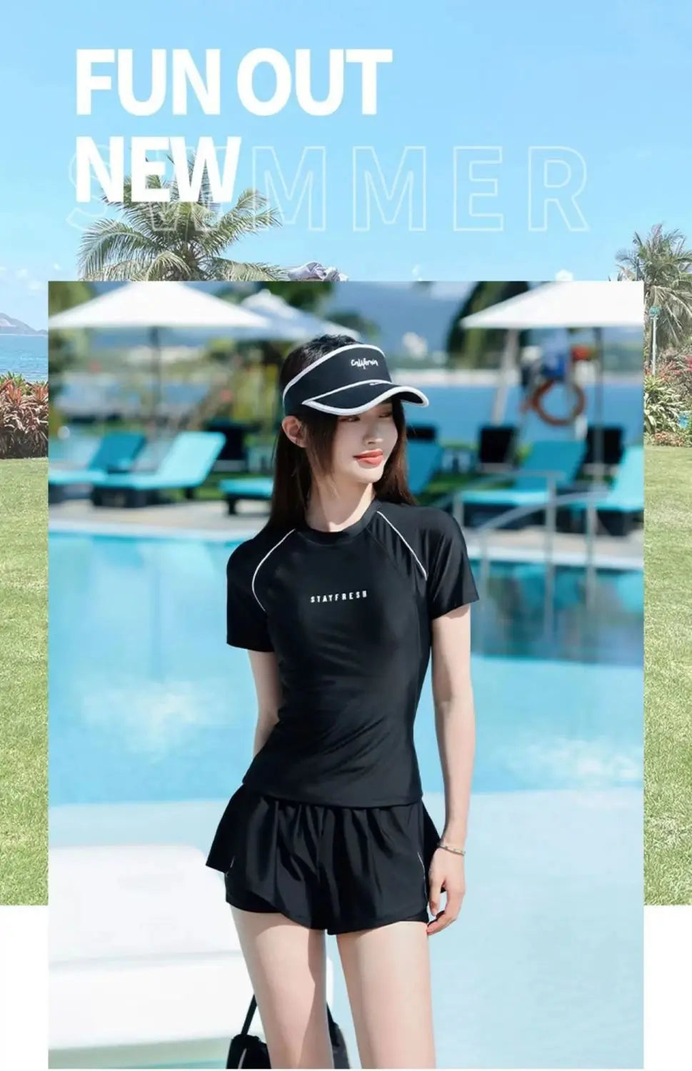 Sports Swimsuit, Swimsuit, Women's New Plus Size Two-piece Set, Short Sleeved, Student Hot Spring Conservative Swimsuit