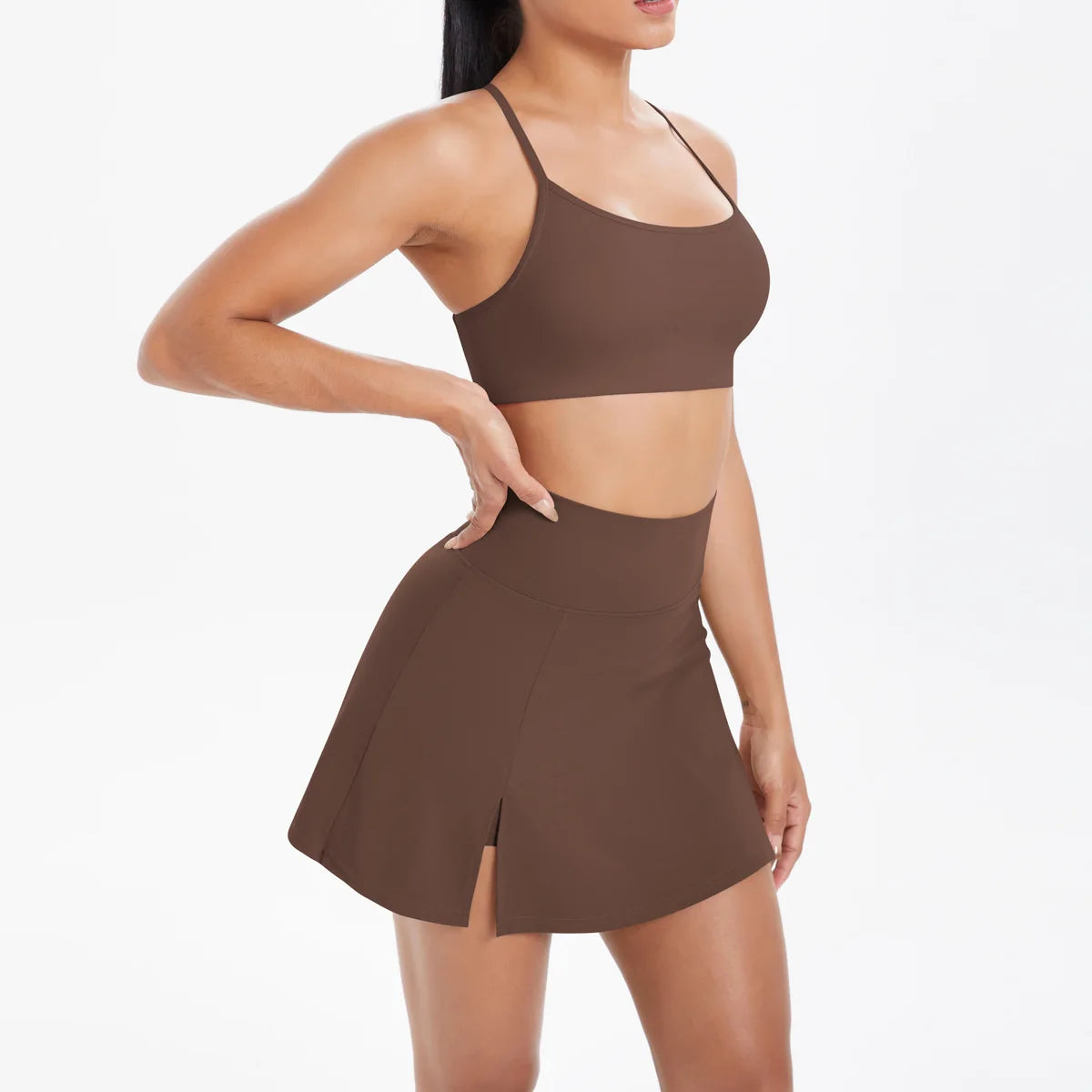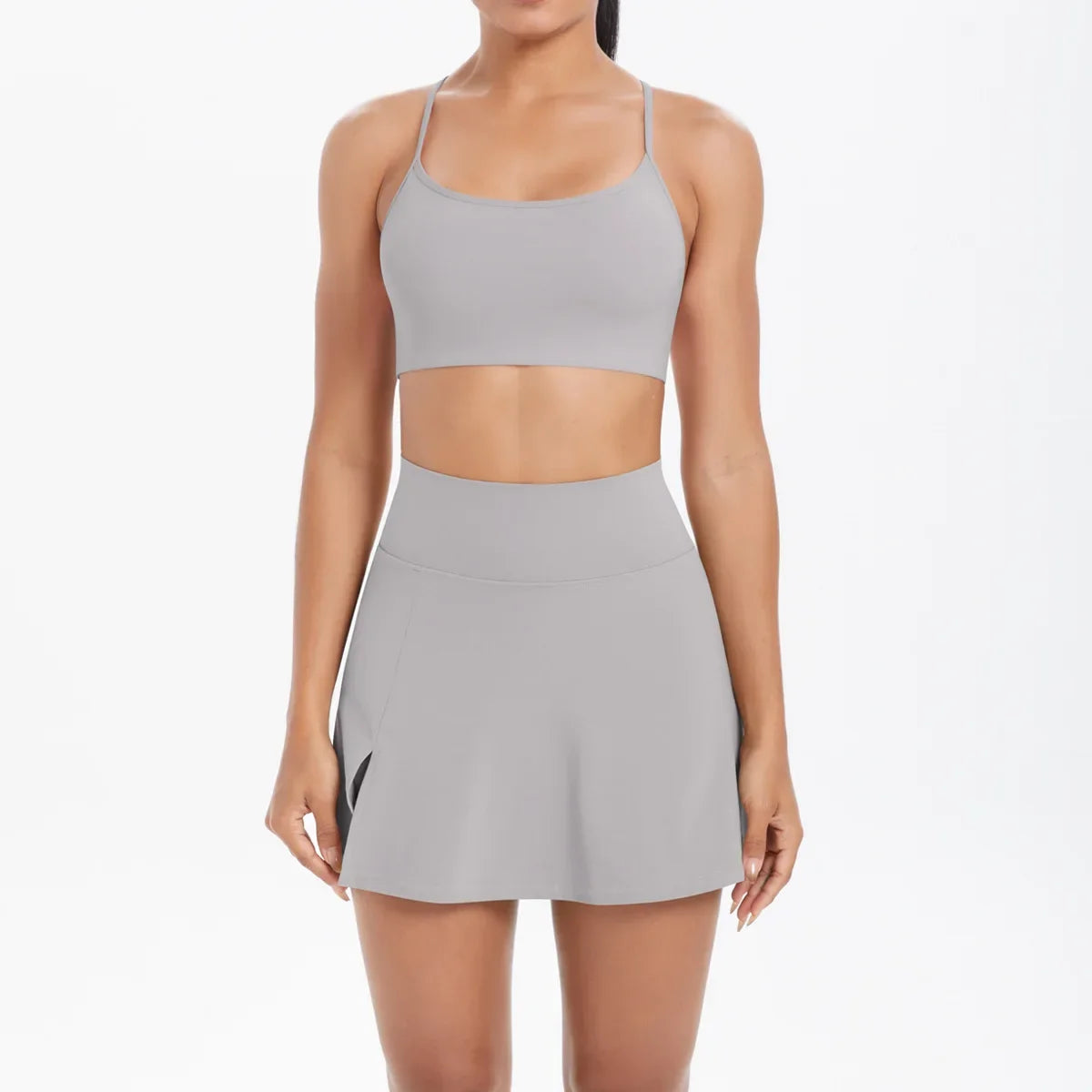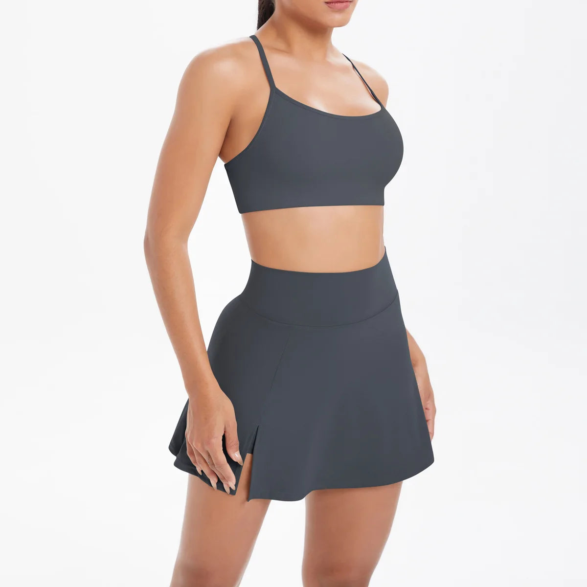 Sports Yoga Set Women Gym Fitness Running Suit Yoga Bras 2 in 1 Tennis Skirt Breathable Shorts Two Pieces Workout Clothes