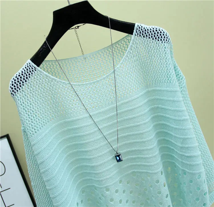 Spring and Summer New Ice Silk Knitted Vest Top Hollow Out Thin Bottoming Sling Streetwear Womens Clothing White Shirt 13686