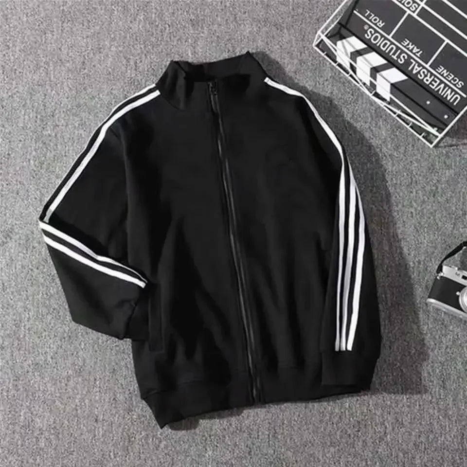 Spring Autumn New Three Bars Jacket Women's Thin Baseball Style Loose Bf Trendy Black Coat for Students Casual Outerwear