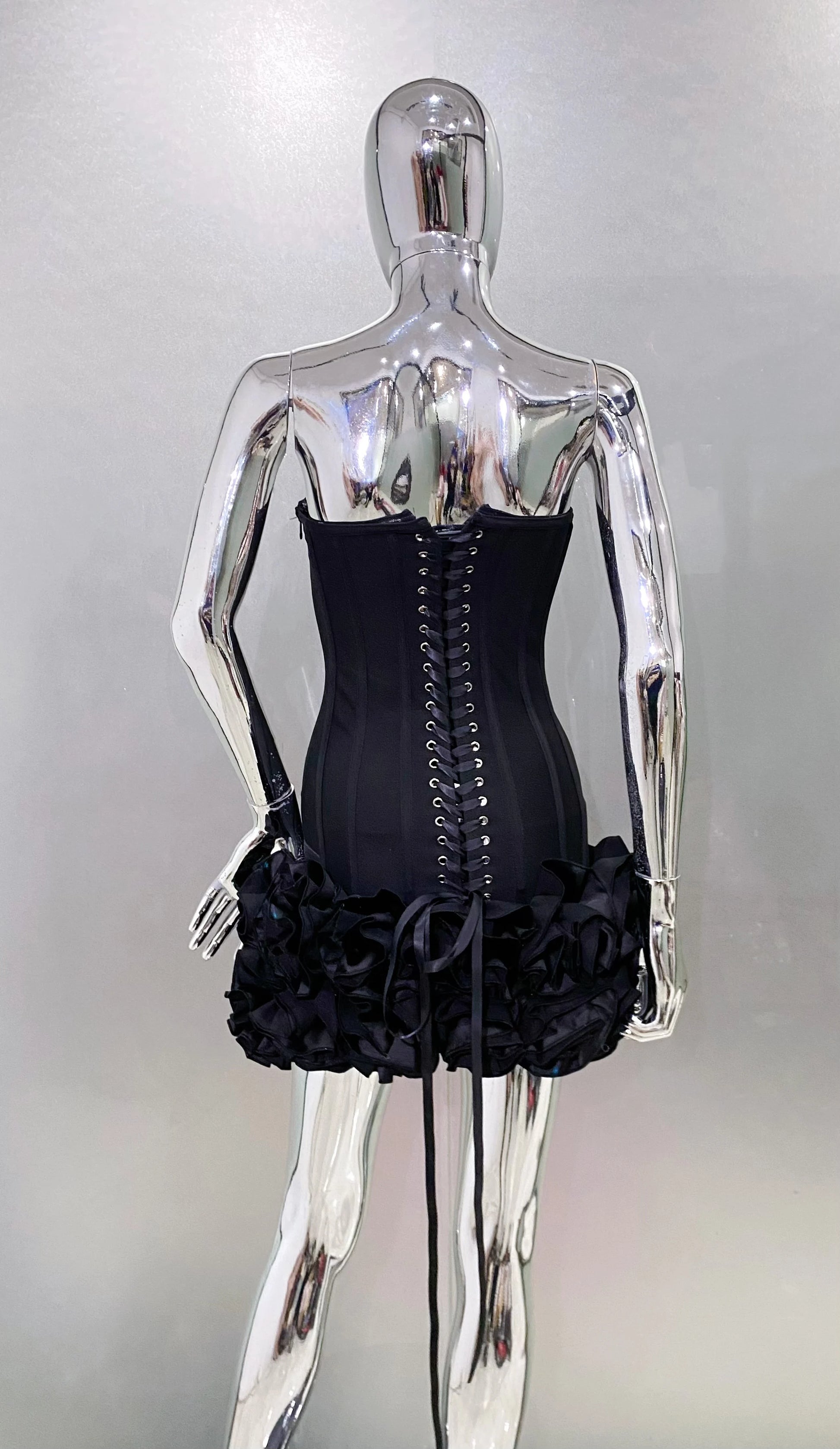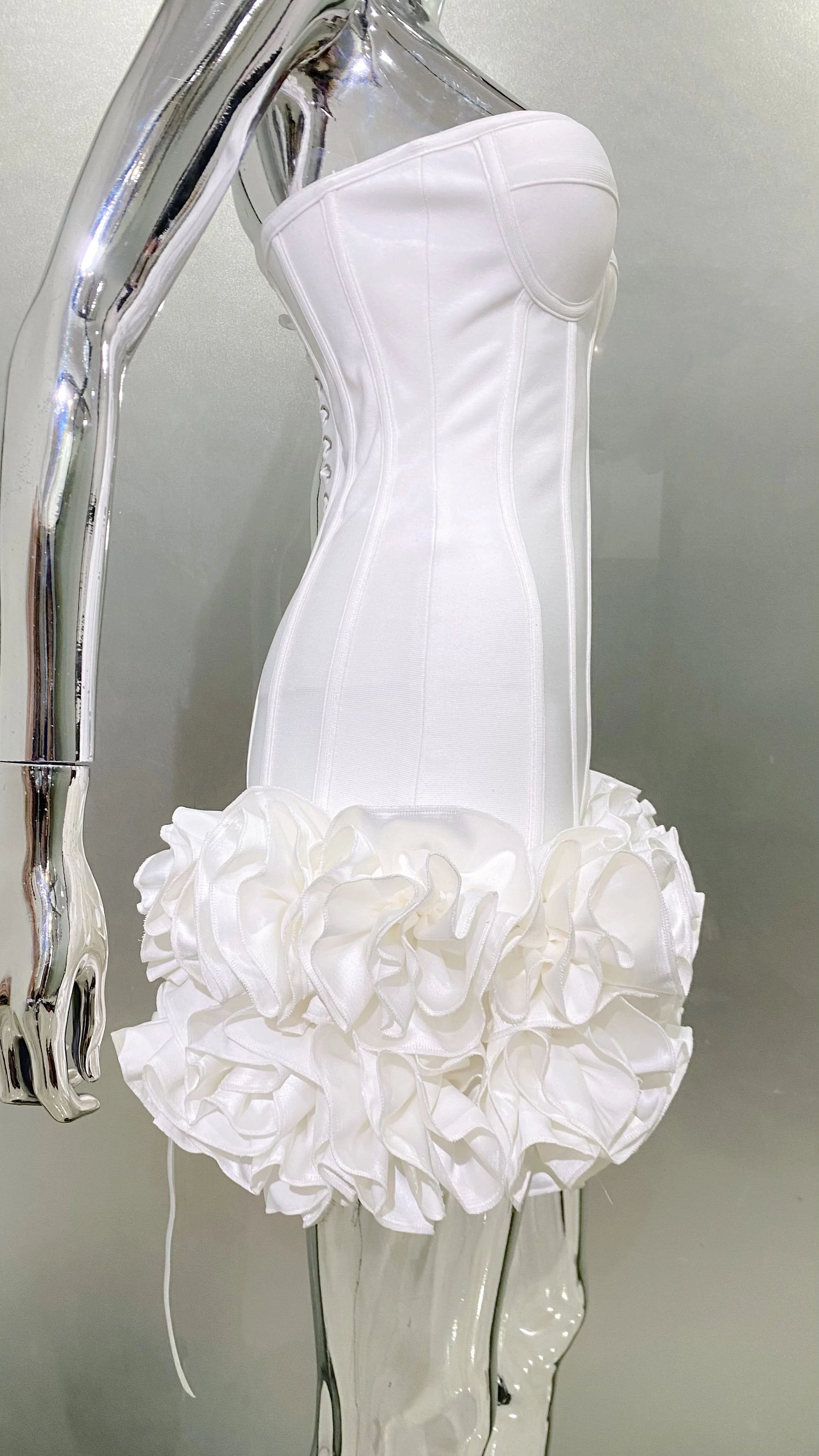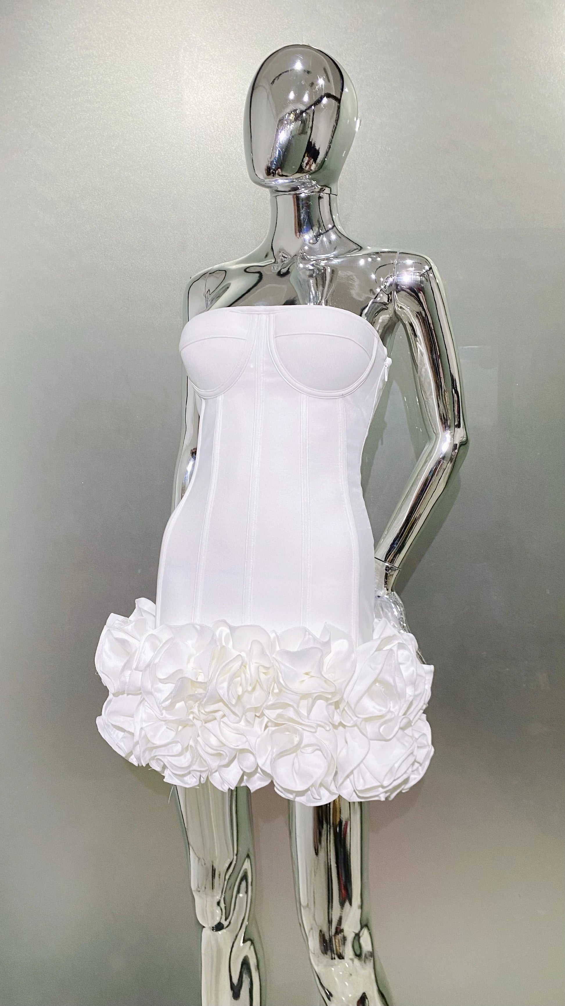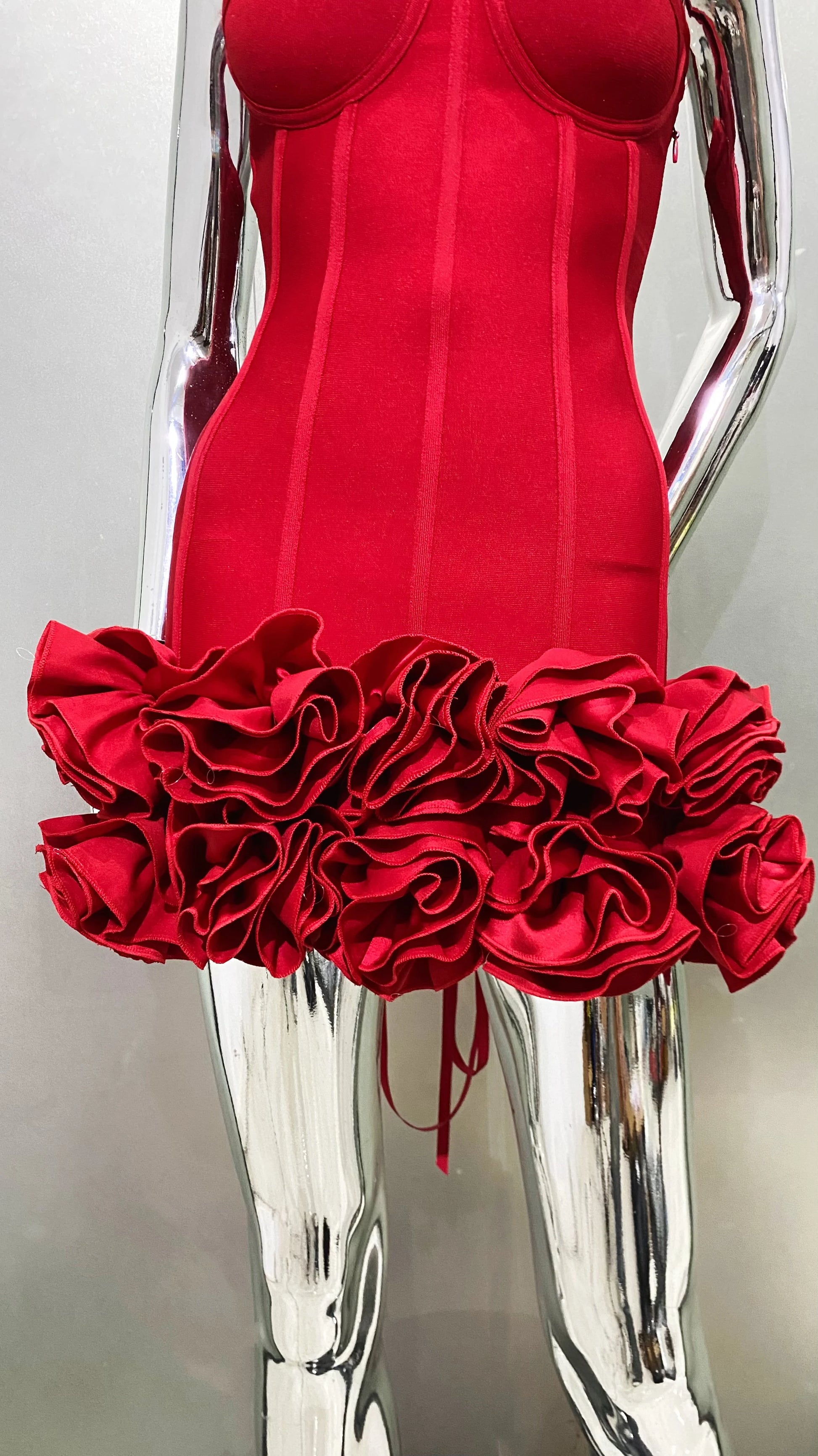 Stereoscopic Flowers Back Laceing Strapless Red Bandage Mini Evening Dress Sweet Woman Birthday Party Dress Performance costume