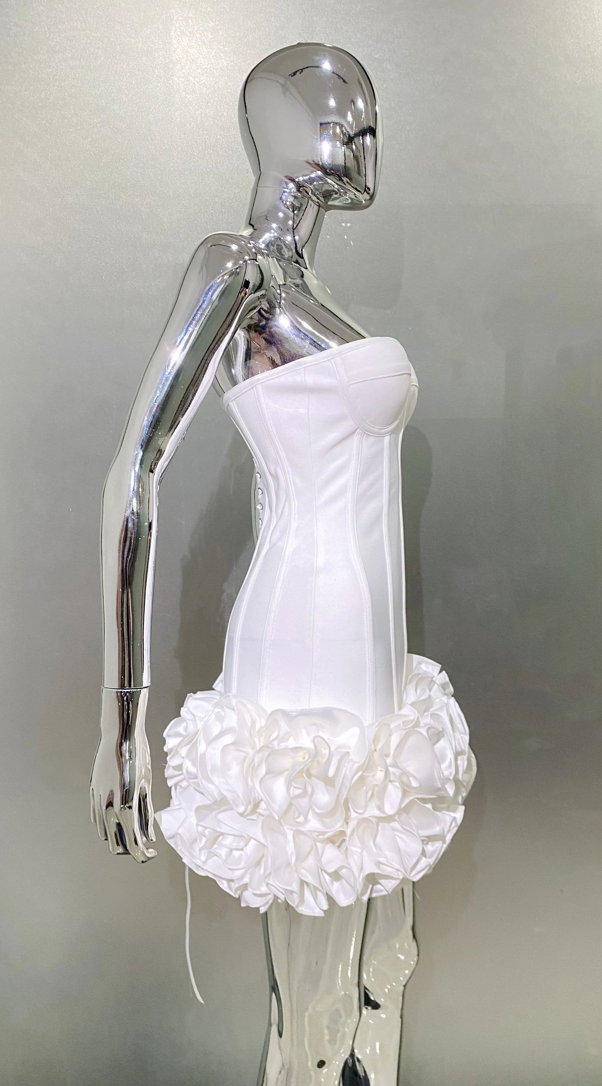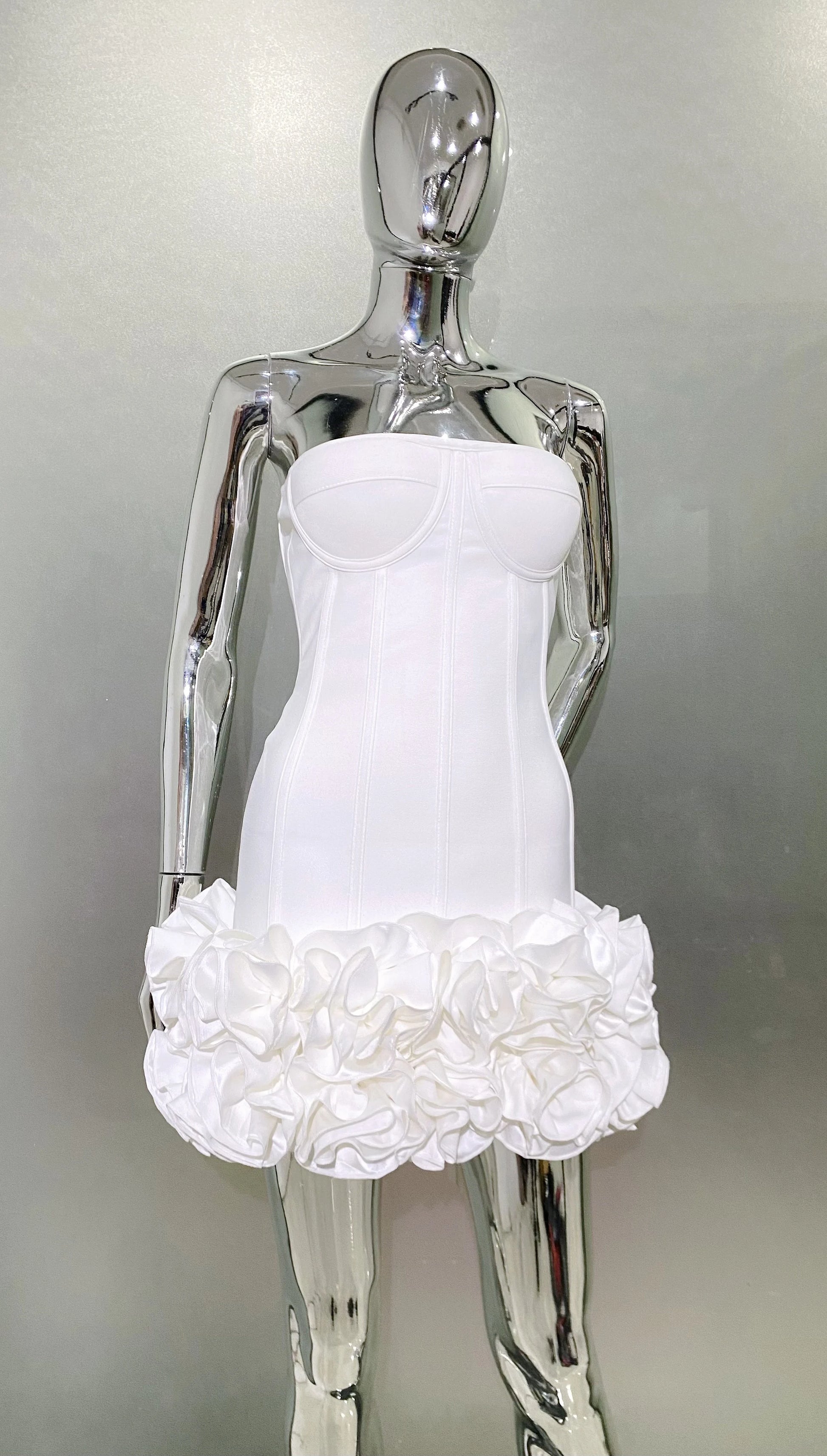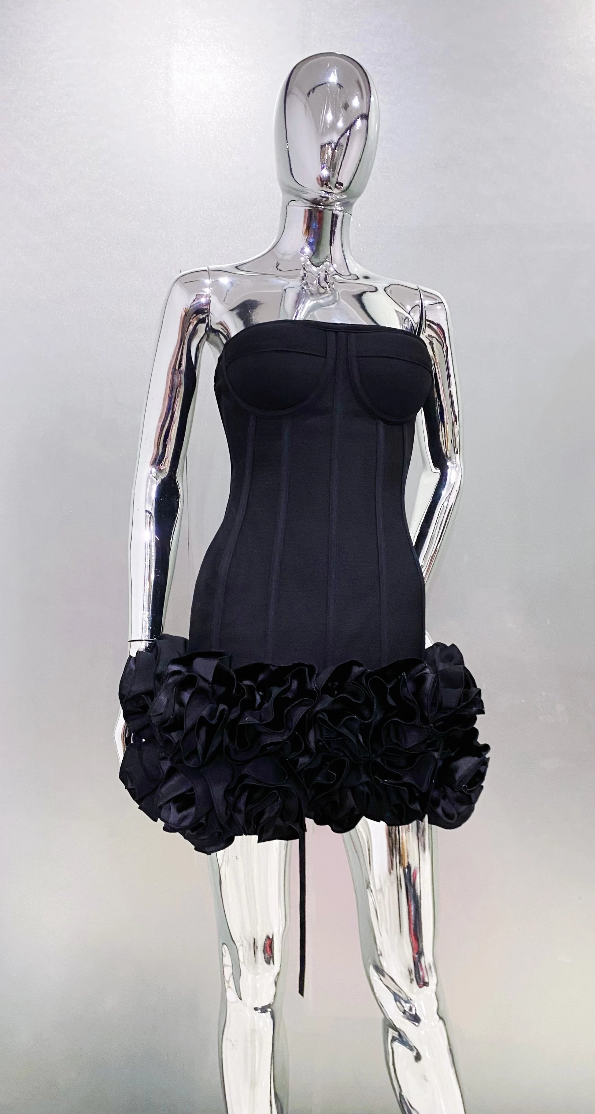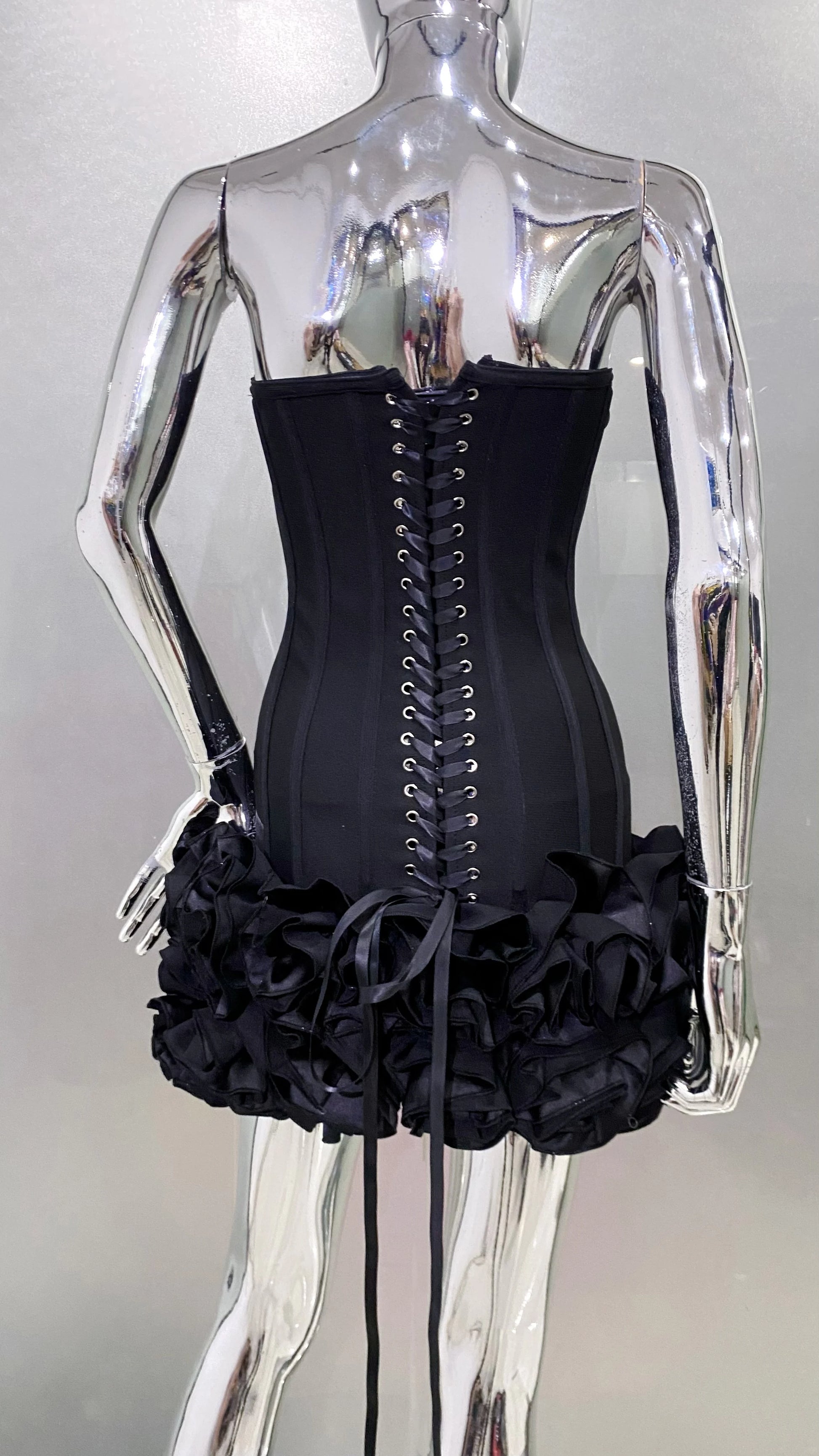 Stereoscopic Flowers Back Laceing Strapless Red Bandage Mini Evening Dress Sweet Woman Birthday Party Dress Performance costume