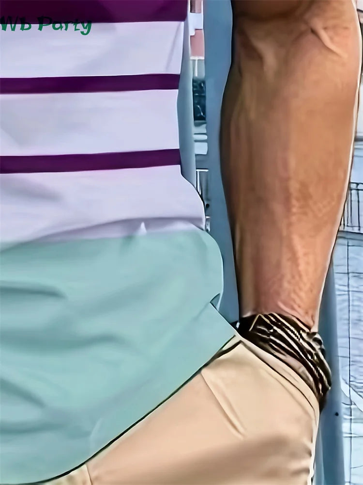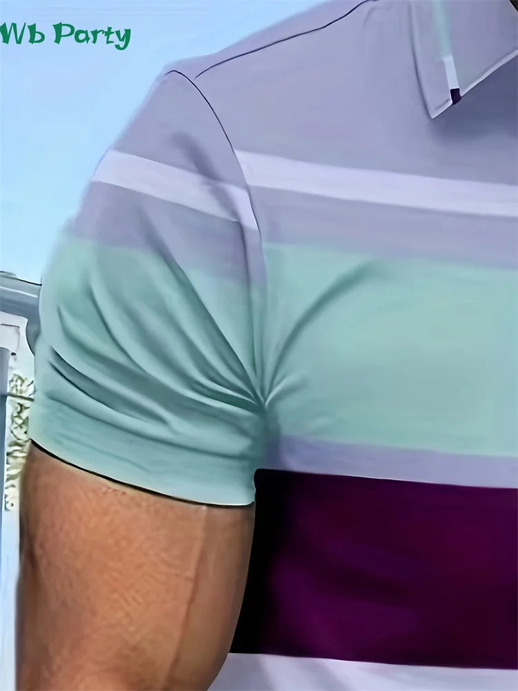 Striped Print Men's Shirts Fashion T shirt Men Simple Men's Clothing Lapel Shirts for Men Men's Clothing 2024 Mens Polo Shirts