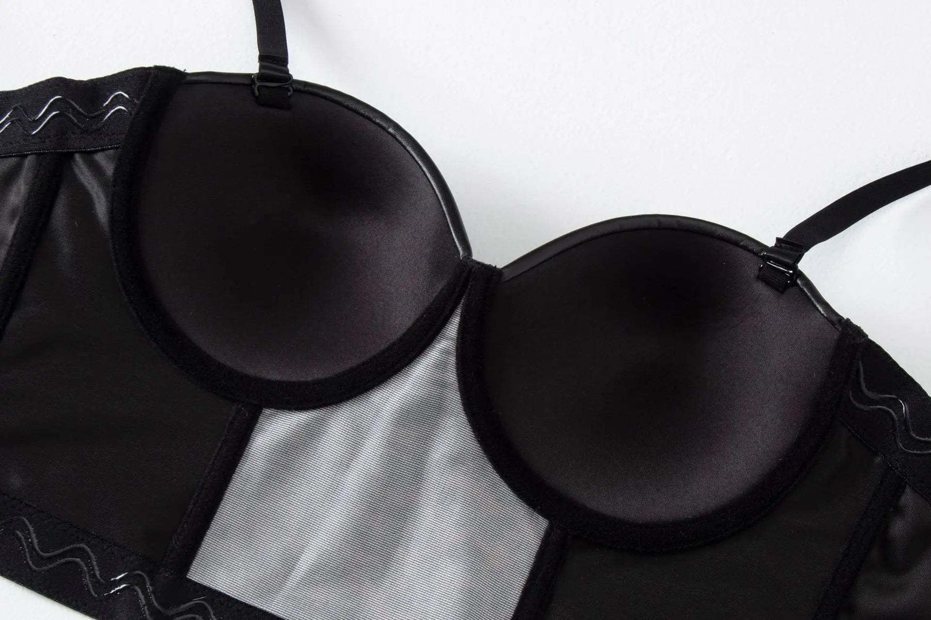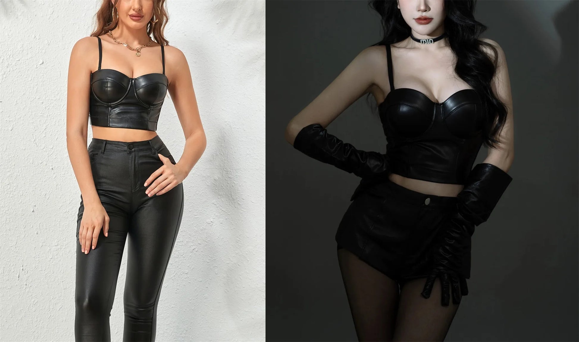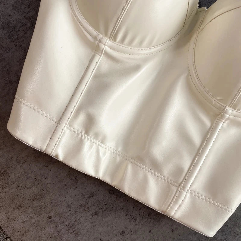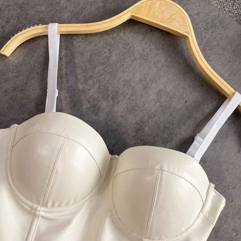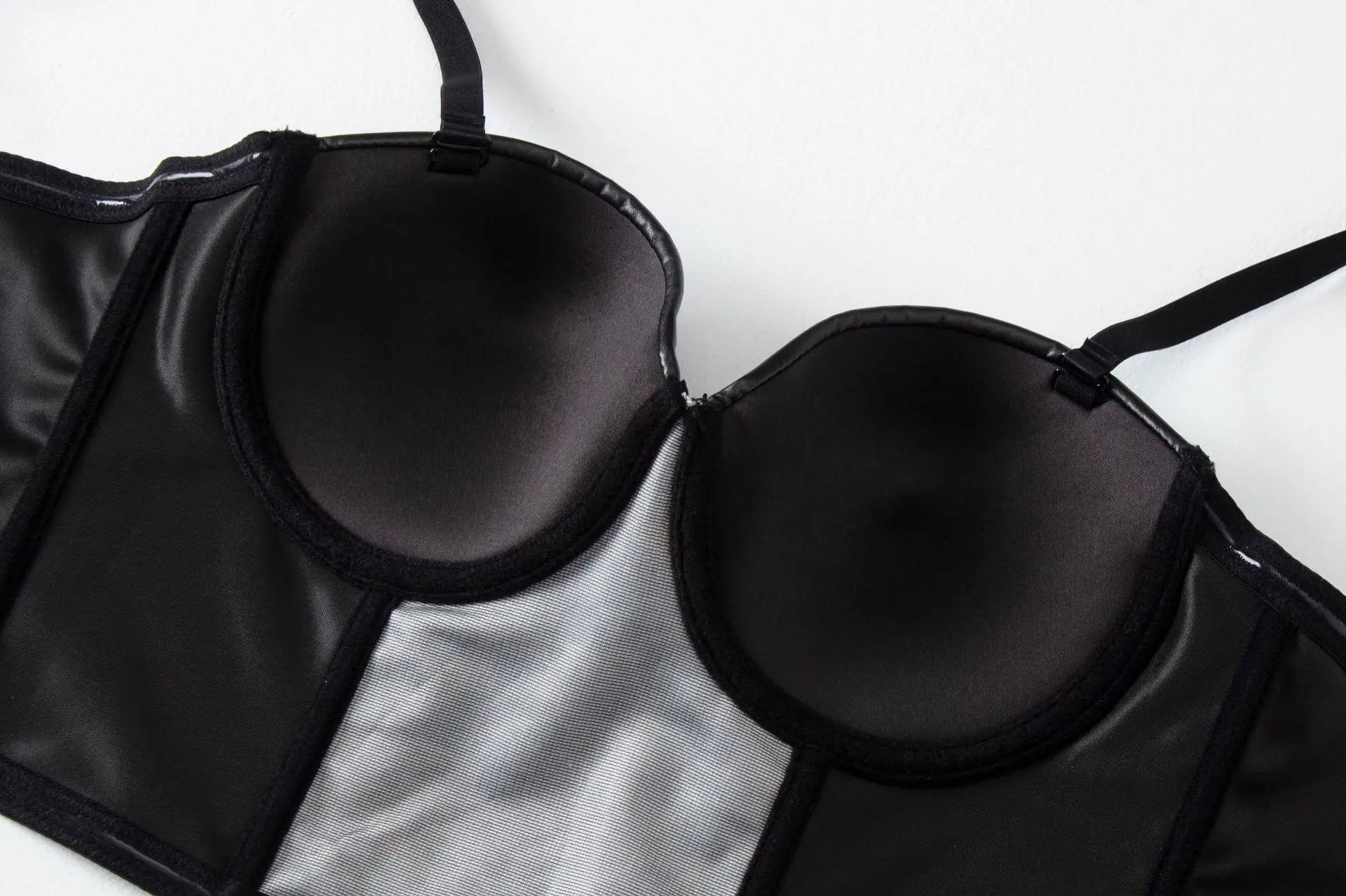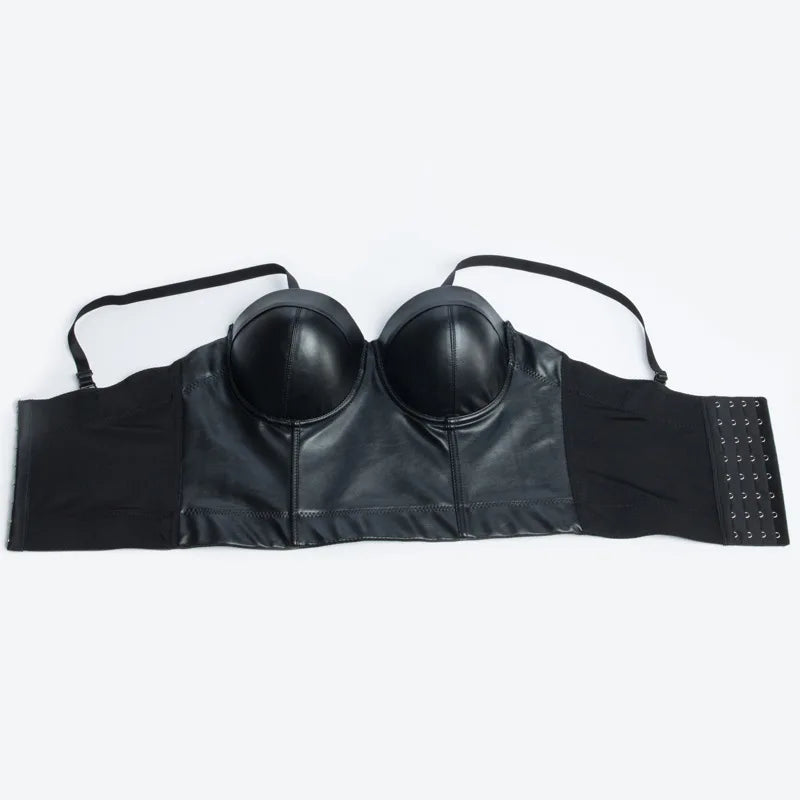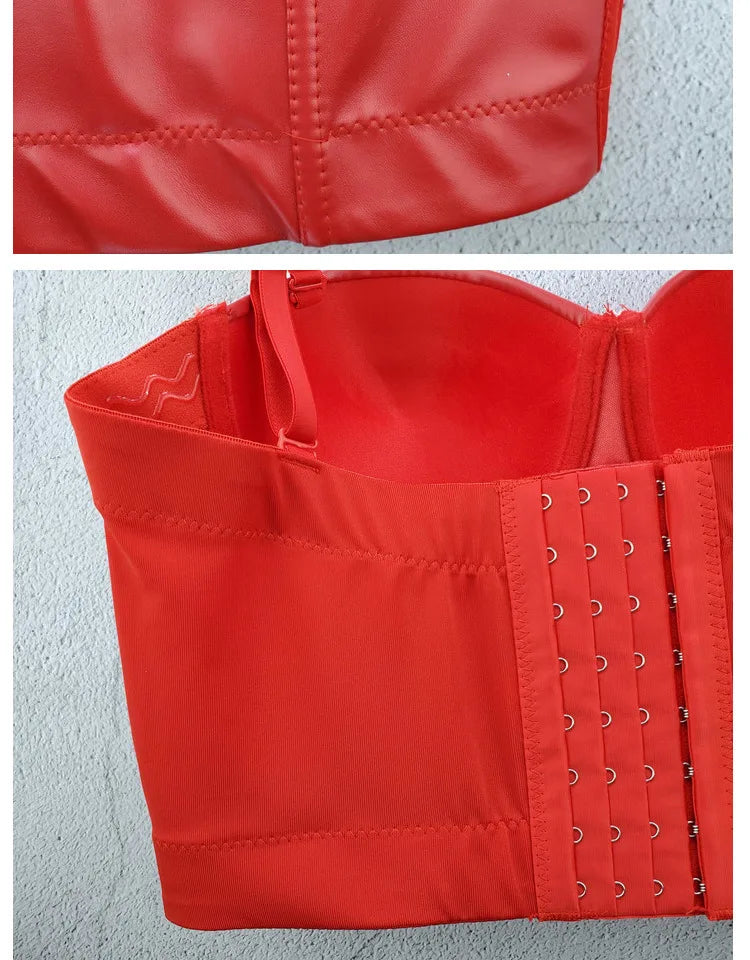 Stylish Wowen PU Leather Corset Imitation Leather Festival Clothing Bustier Lady Cropped Top Girls Punk Rock Club Party Camis