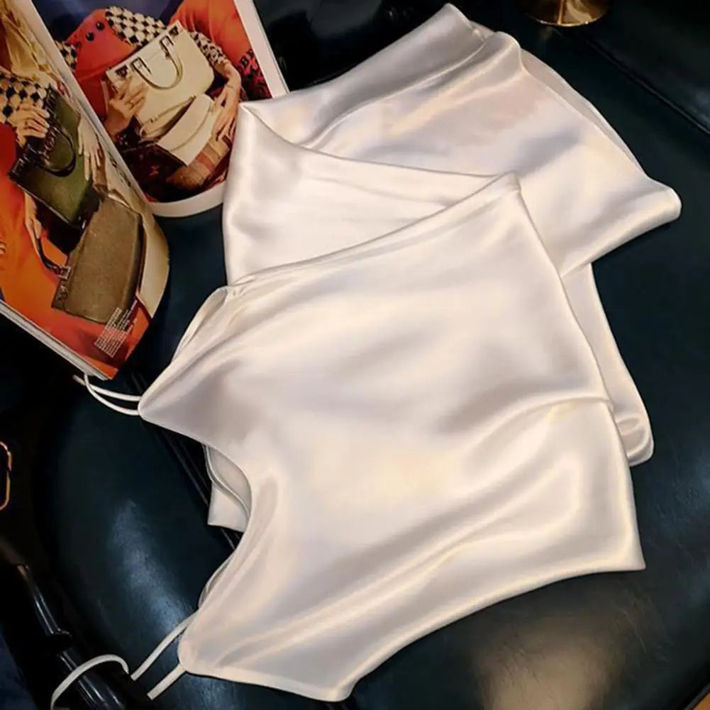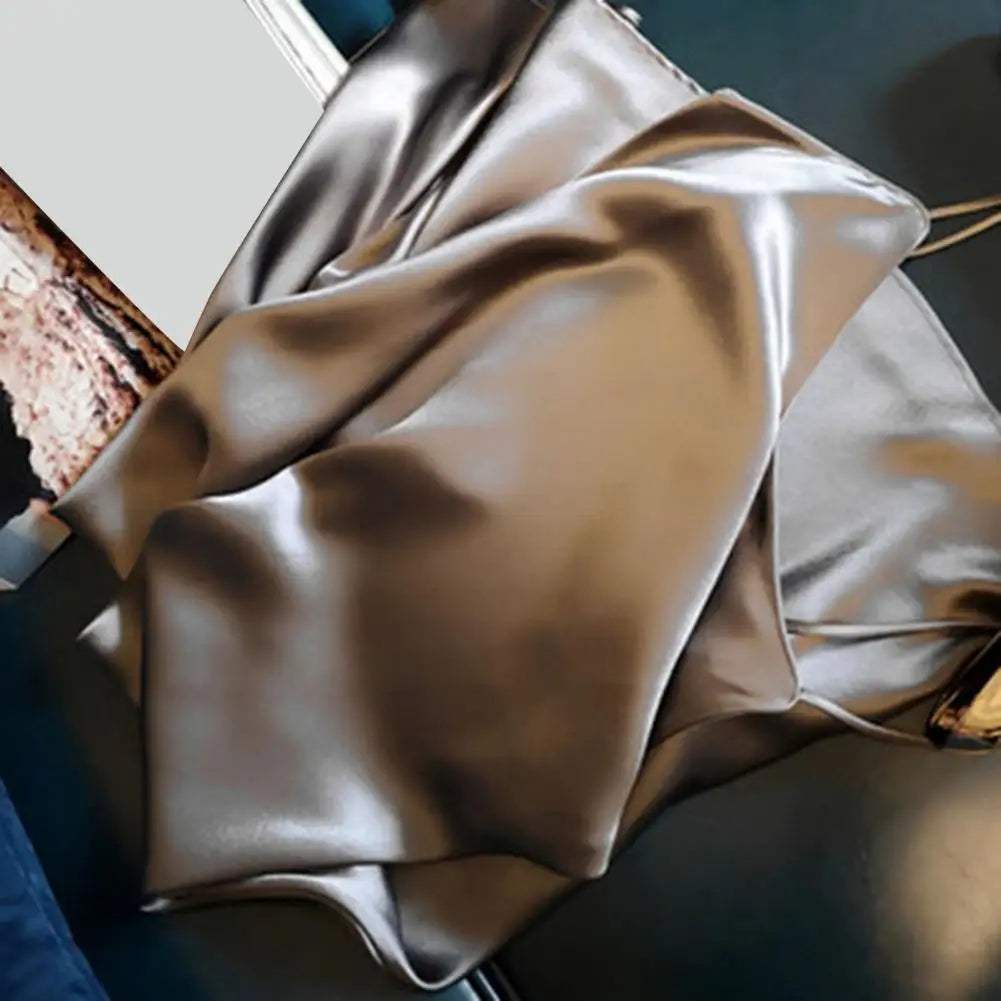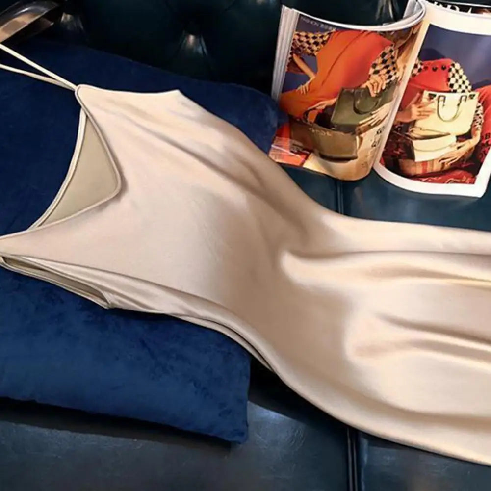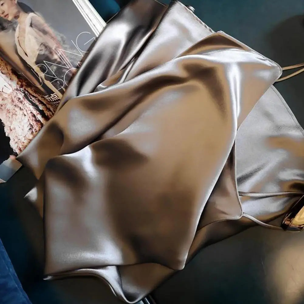 Summer dress with silk satin V-neck women's suspender skirt, wide and relaxed swing, backless lace up dance party