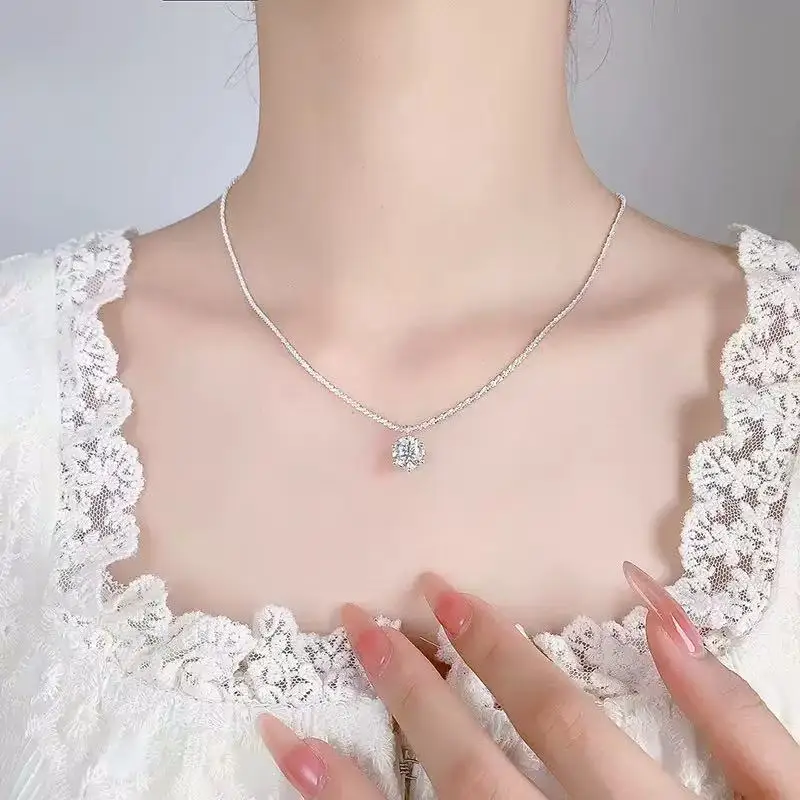 TEN CARATS 0.5-2CT GRA Moissanite Necklace for Women D Color Sparkling Classic Lab Diamon Pendant Sterling Silver 925