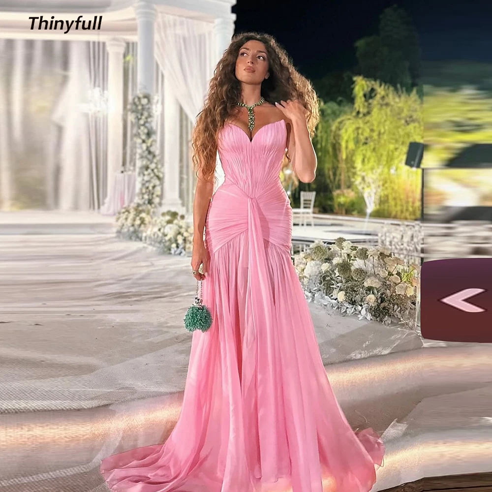Thinyfull Chiffon Mermaid 2026 Prom Dress Sleeveless Sweetheart Ruched Evening Dress Long Formal Gown Robe De Soirée Customized