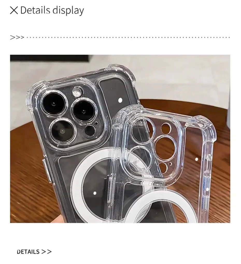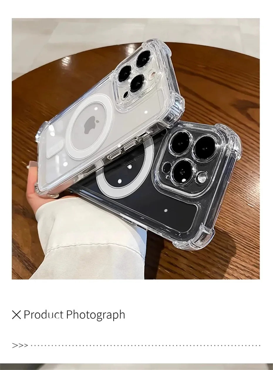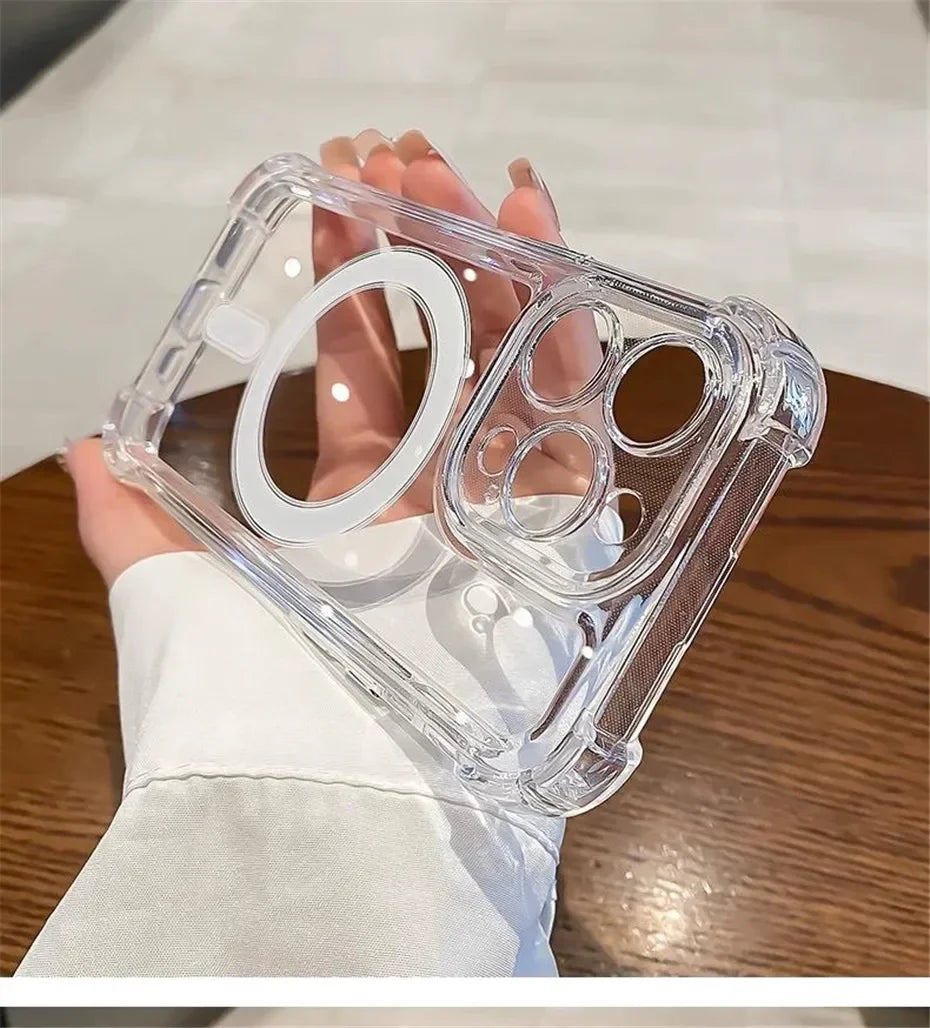 Transparent Magnetic Soft Phone Case For iPhone 17 Air 16 15 14 Plus 13 12 11 Pro Max Wireless Charge Magsafe Shockproof Cover
