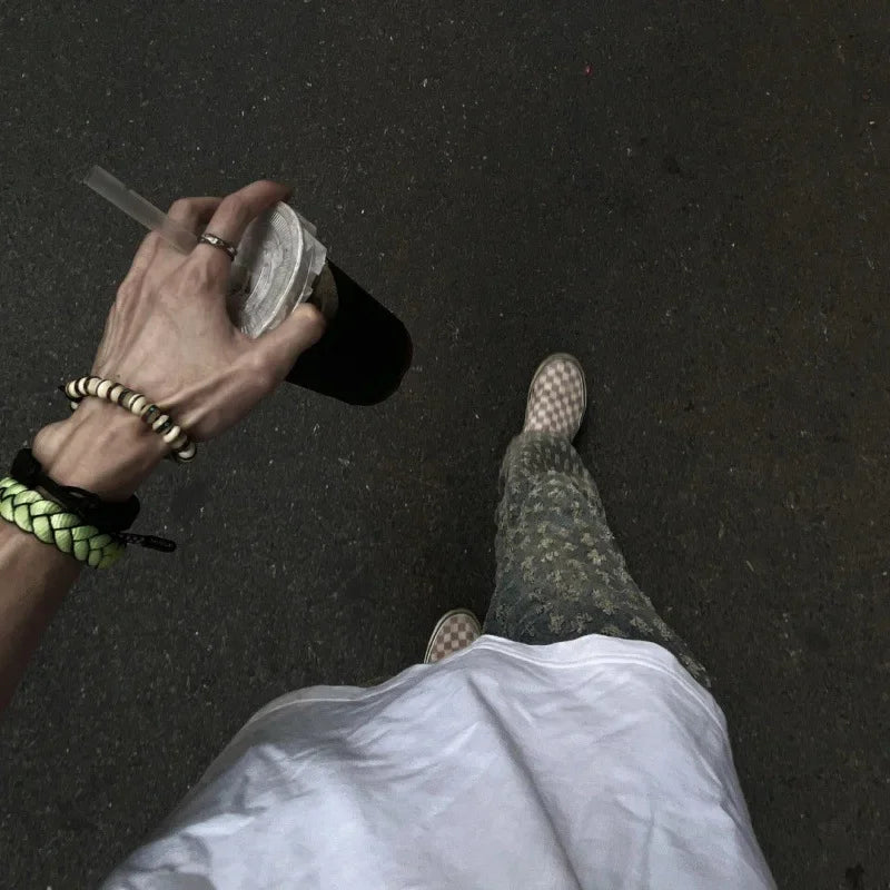 Trendy Brand Hiphop Slimming Straight-leg Jeans Jacquard Full Print European American High Street Style For Men