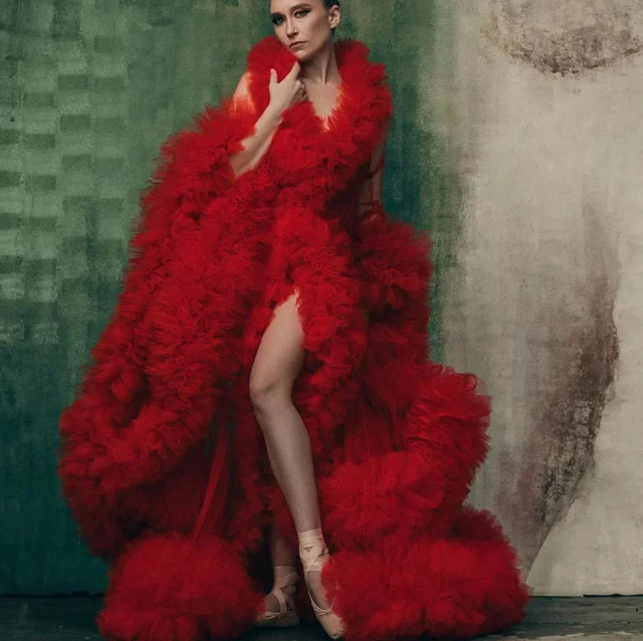 Tulle Ruffle Boudoir Pregnancy Photoshoot Robe Ruffle Maternity cloak For Baby Shower Gender Reveal bridal Dress wedding