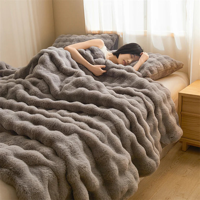 Ultra Soft Luxury Flffy Faux Rabbit Fur Blanket, Thick Winter Warm Throw Blankets, Plush Cozy Bubble Fleece Blankets Home Decor