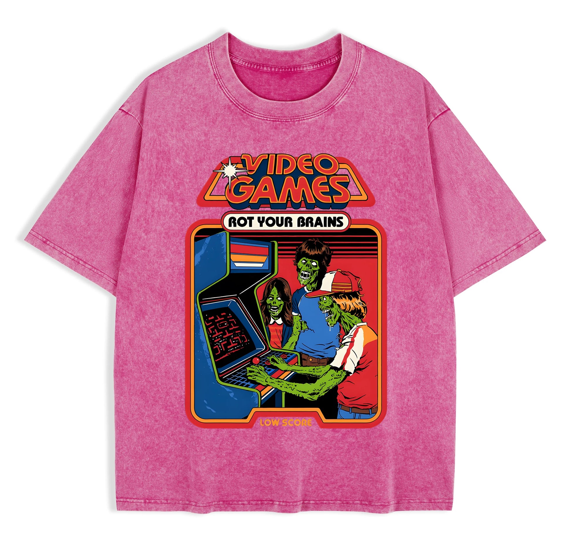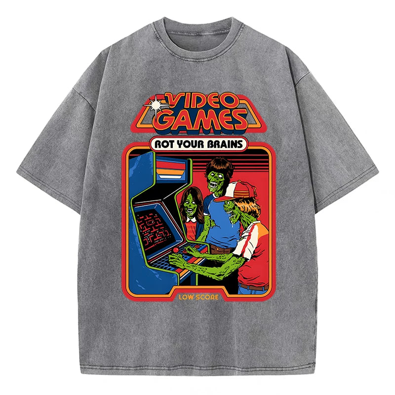 Video Games Rot Your Brains Washed Retro Mens T-Shirt Cotton Loose Tees Cotton Oversize Streetwear Breathable Tshirt Couple