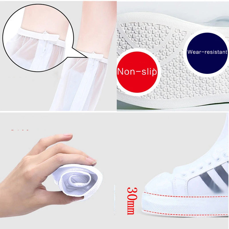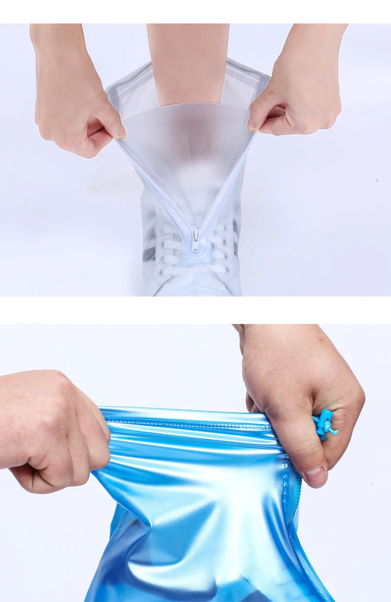 Waterproof Rain Reusable Shoes Cover Slip-resistant Zipper Rain Boots Overshoes High Quality Black Blue Blue High Shoes Cover