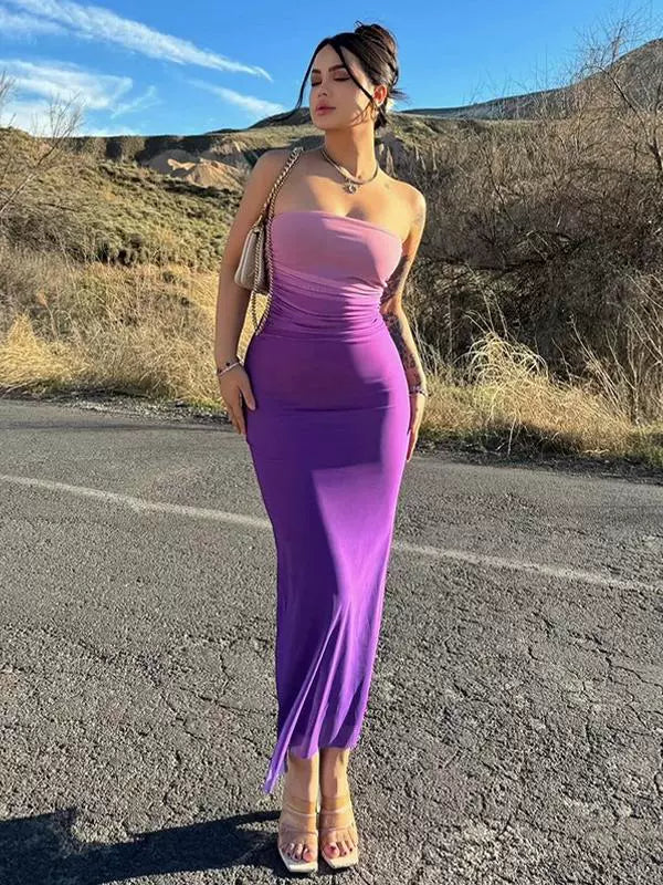 Western Style Ins New Fashion Tube Top Gradient Color Slim fit Long dress Sexy Backless Print Sheath Dress Women