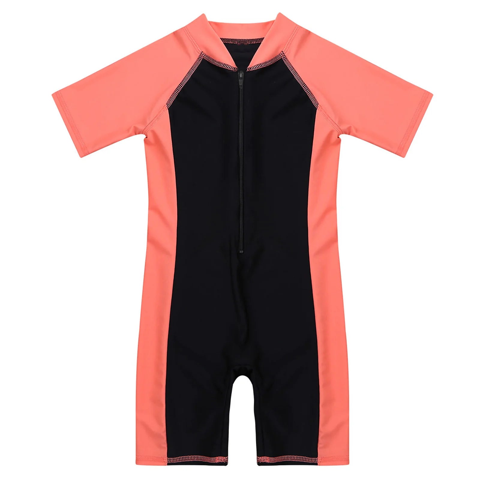 Wetsuits Kids Boys Girls Swimwear Swimsuits Short Sleeves Bodysuit Zippered Shorty Unitard Children's Bathing Suit Wetsuit