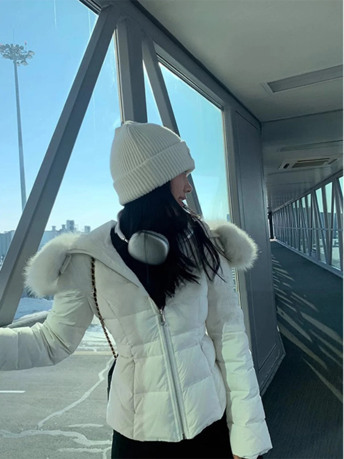 White Large Fur Collar down Jaet Women's 2025 Winter New Design Ultra Slim Lightweight Hooded White Du down Outerwear