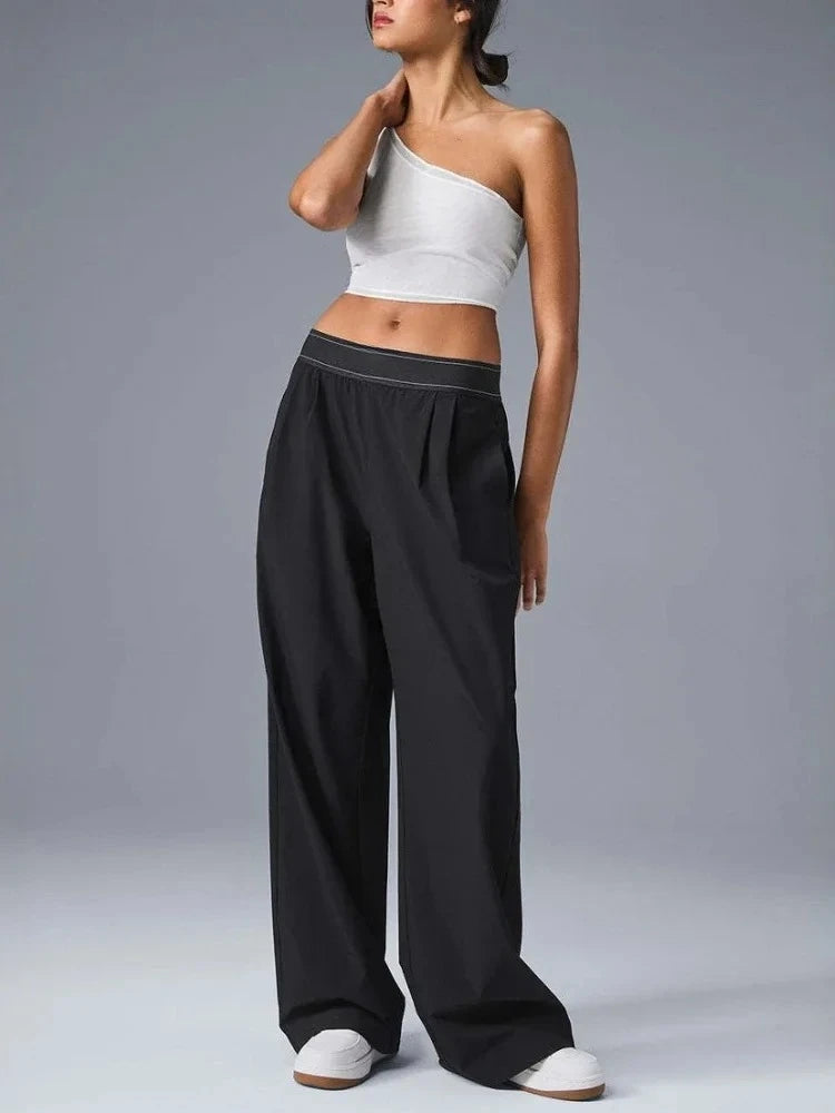 Wide Leg Yoga Pants Women Summer Loose Hanging Casual Pants Women's Versatile Solid Black Suit Western-Style Pants