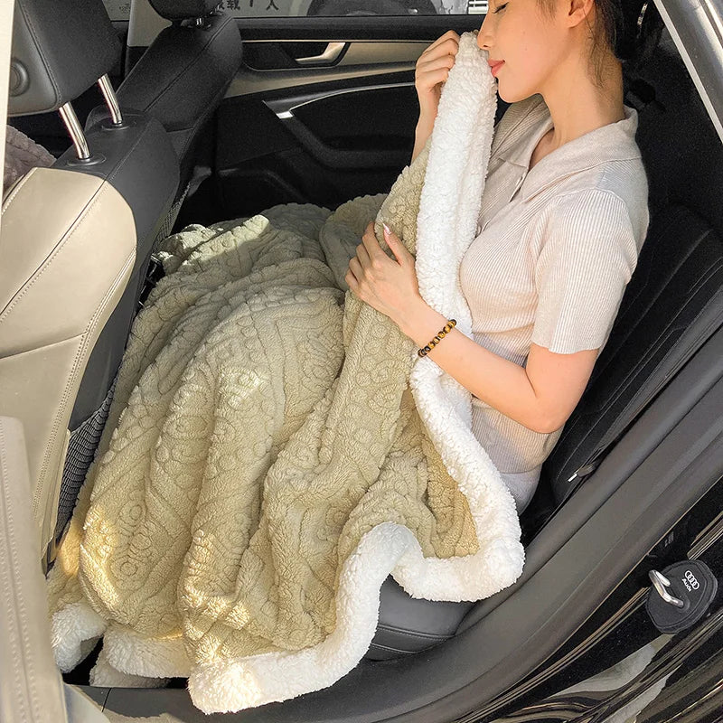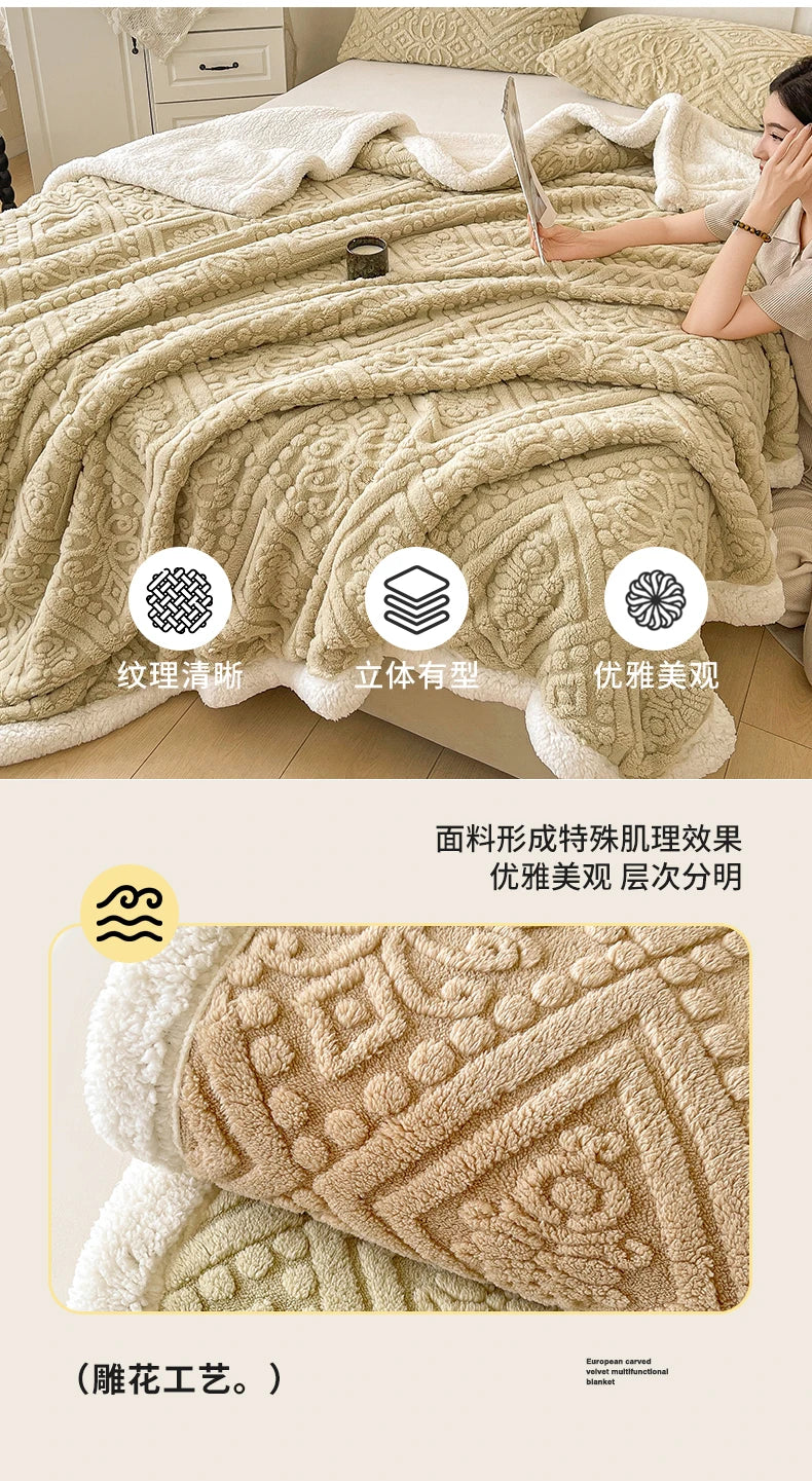 Winter Double Layer Sherpa Blanket Thicken Warmth Blankets for Bed 5D Carved Nap Blanket Quilt Plush Fuzzy Flannel Fleece Quilts