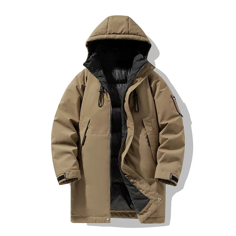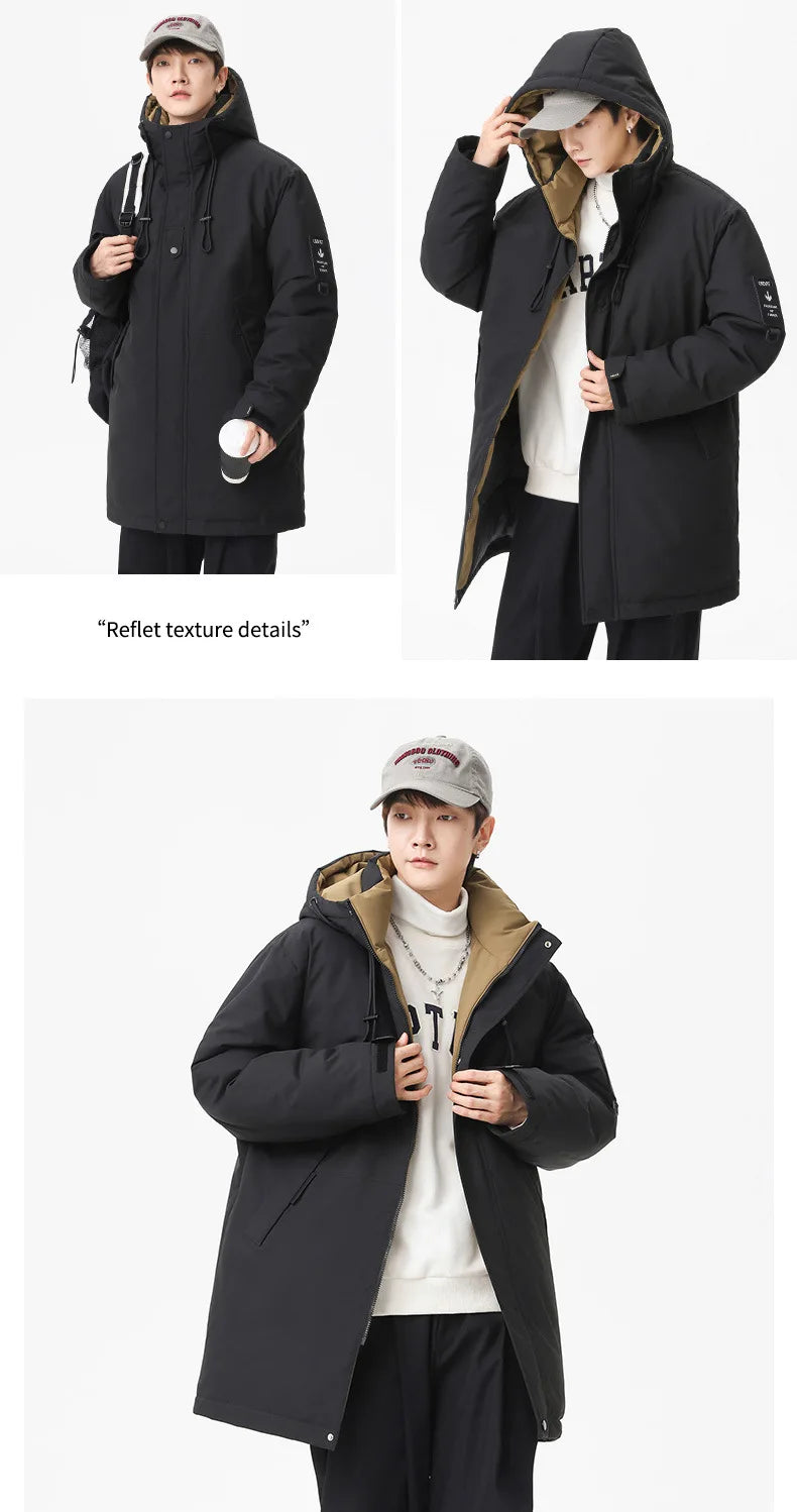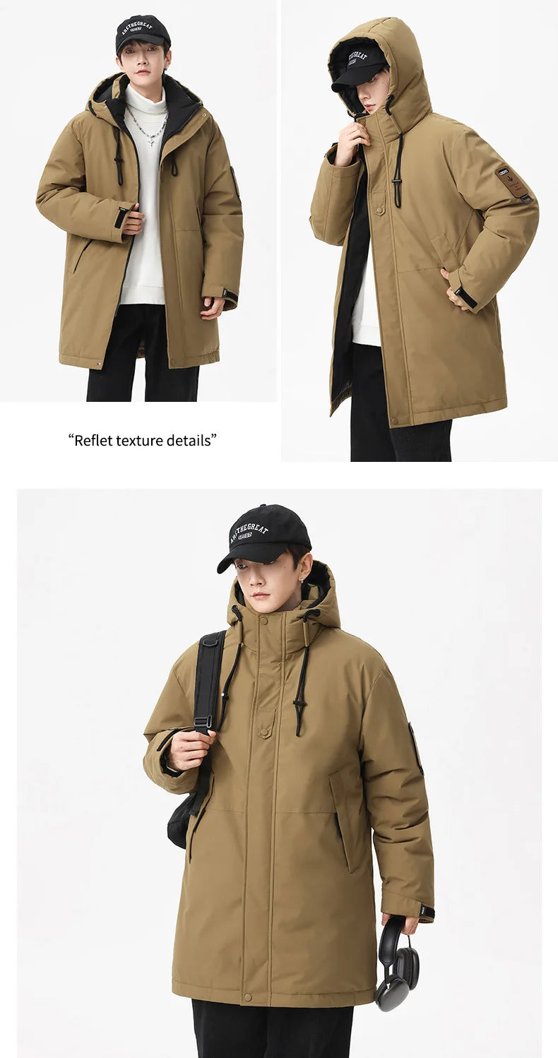 Winter new style cotton coat for men 2026 snap-closed hooded jacket neutral style mid-length workwear cotton coat for men