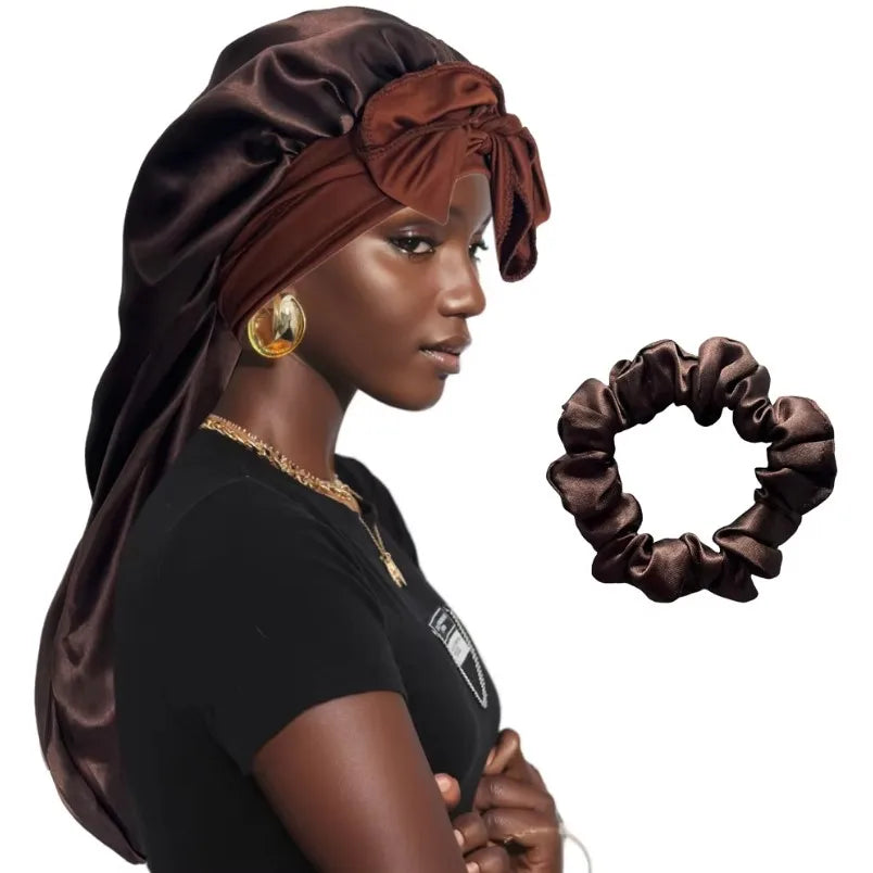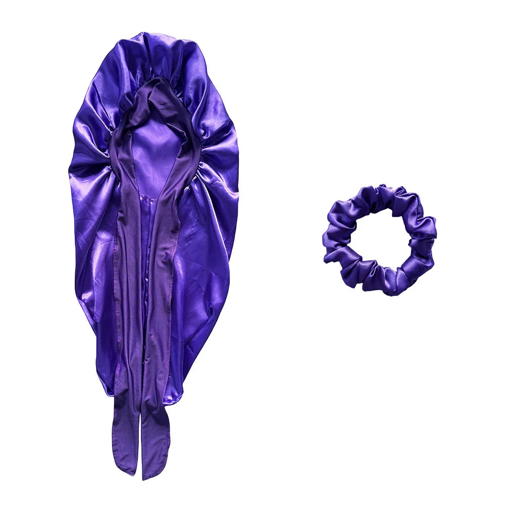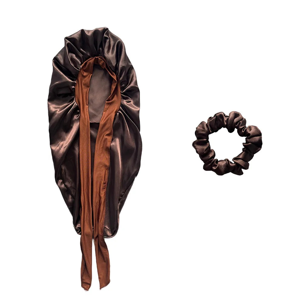 Women Bonnet Satin Sleeping Hat Long Tail Braid Hair Night Sleep Cap Head Cover Bonnets Shower Caps for Sauna Bathing Bonnet