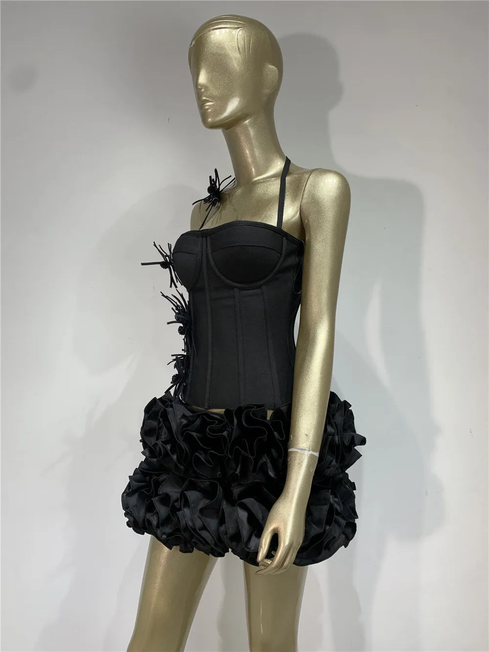 Women Sexy Party Dress Halter Laced Up Crop Top And Flowers Mini Skirt Two Piece Sets Club Evening Celebrity Outfits Wholesale