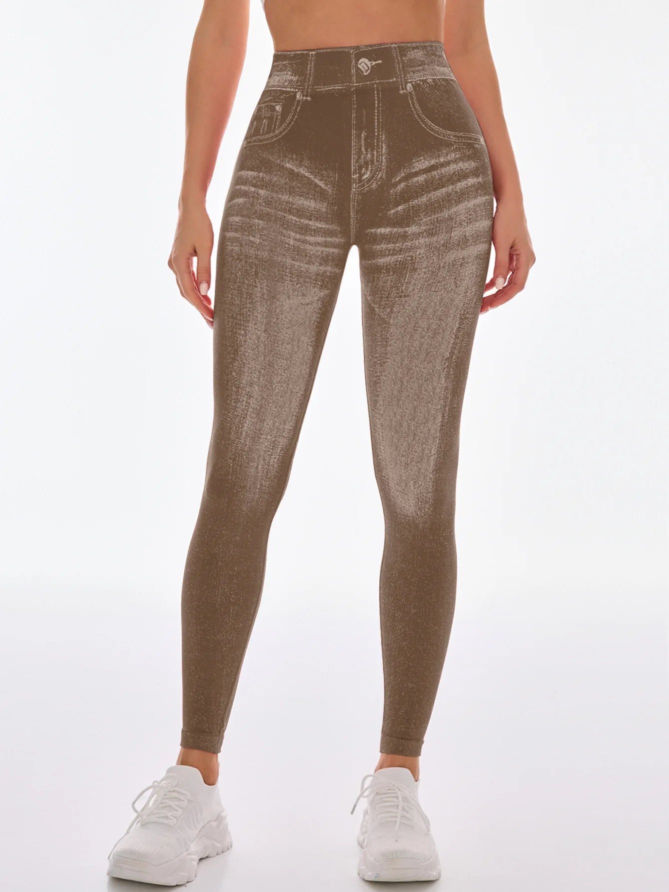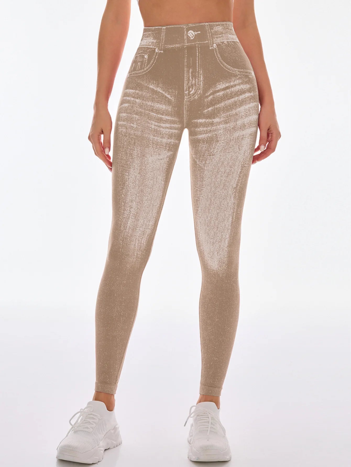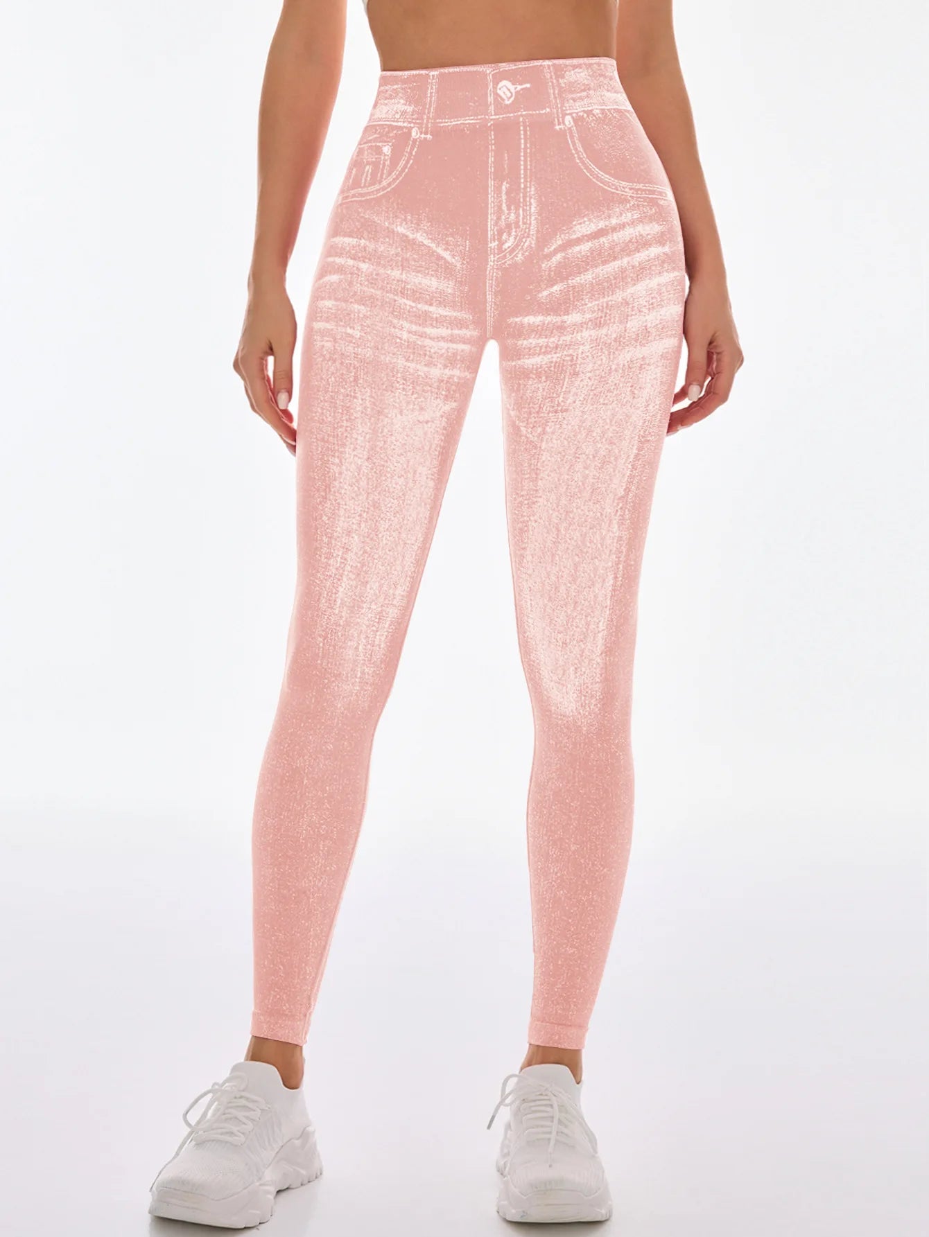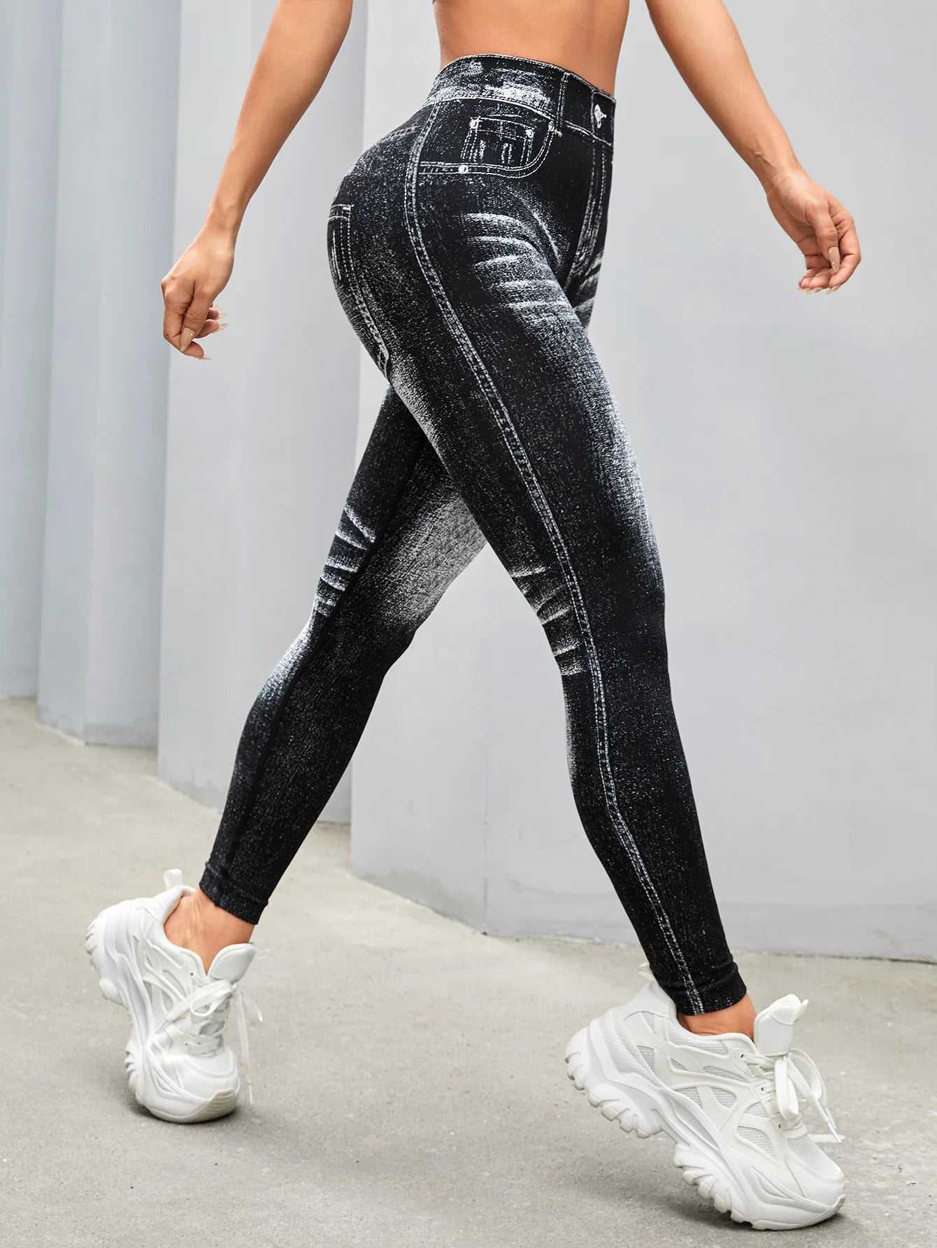 Women V Back Gym Leggings Faux Denim Jeans Athletic Workout Leggins Elastic Seamless Training Yoga Pants Sports Fitness Tights