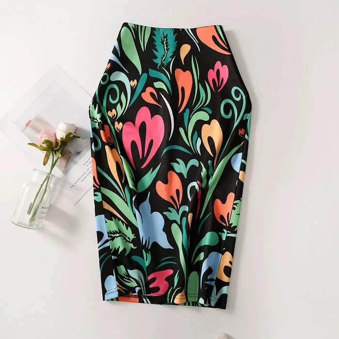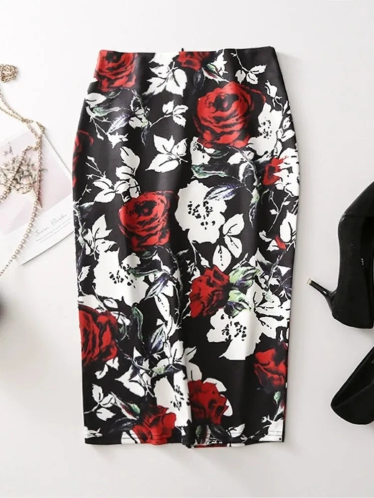 Women Vintage Flower Print Bodycon Skirt Slim Midi Sexy Elegant Pencil Skirt Bag Hip Bandage Skirt Hip Wrap Lolita Short Skirt