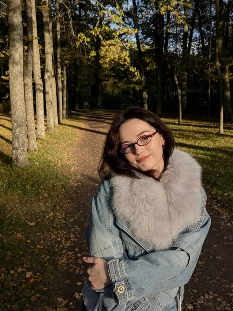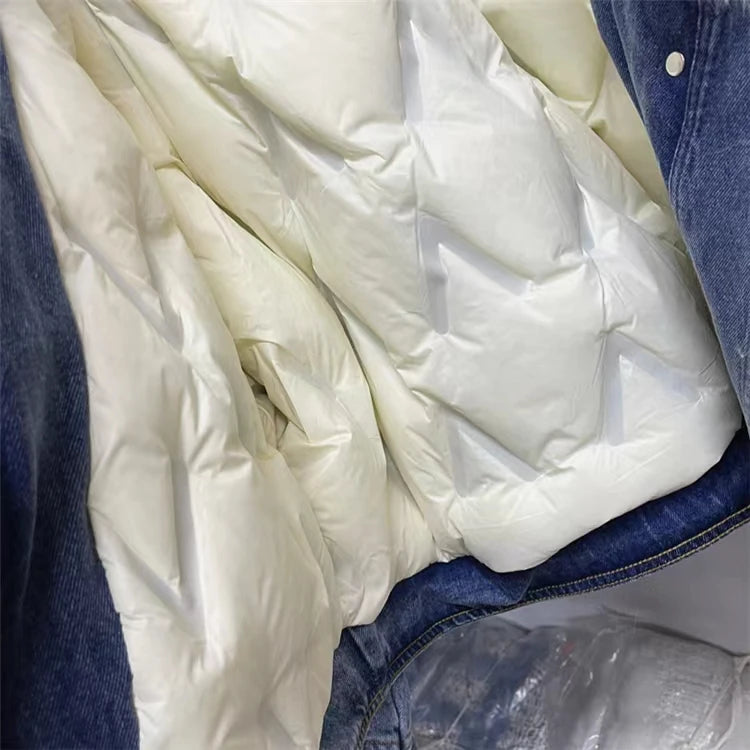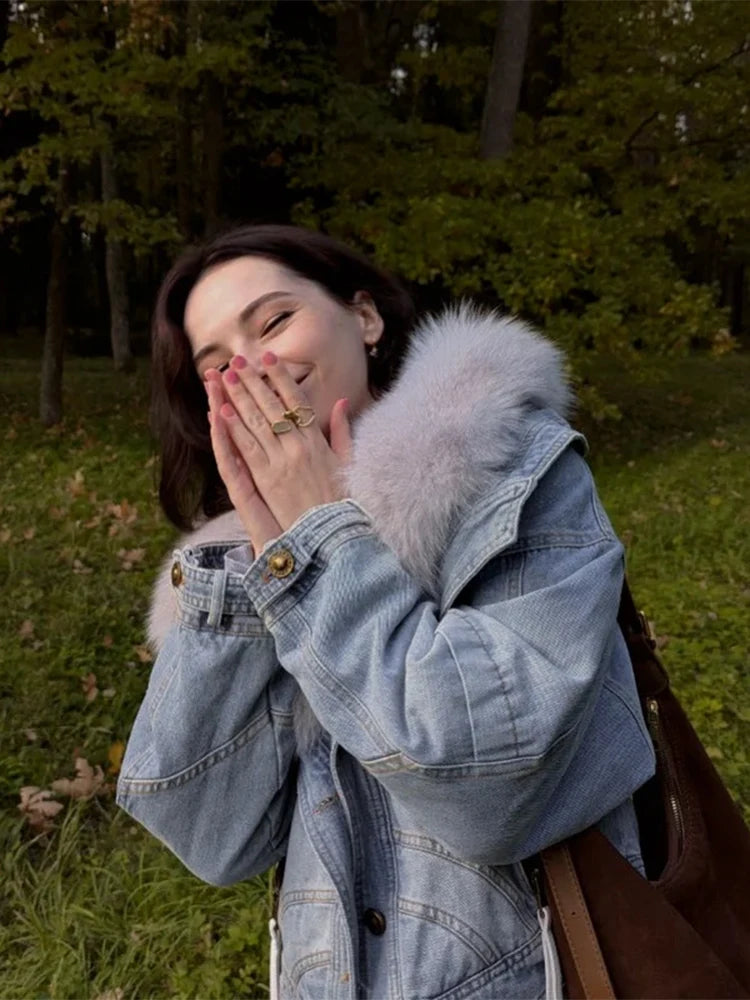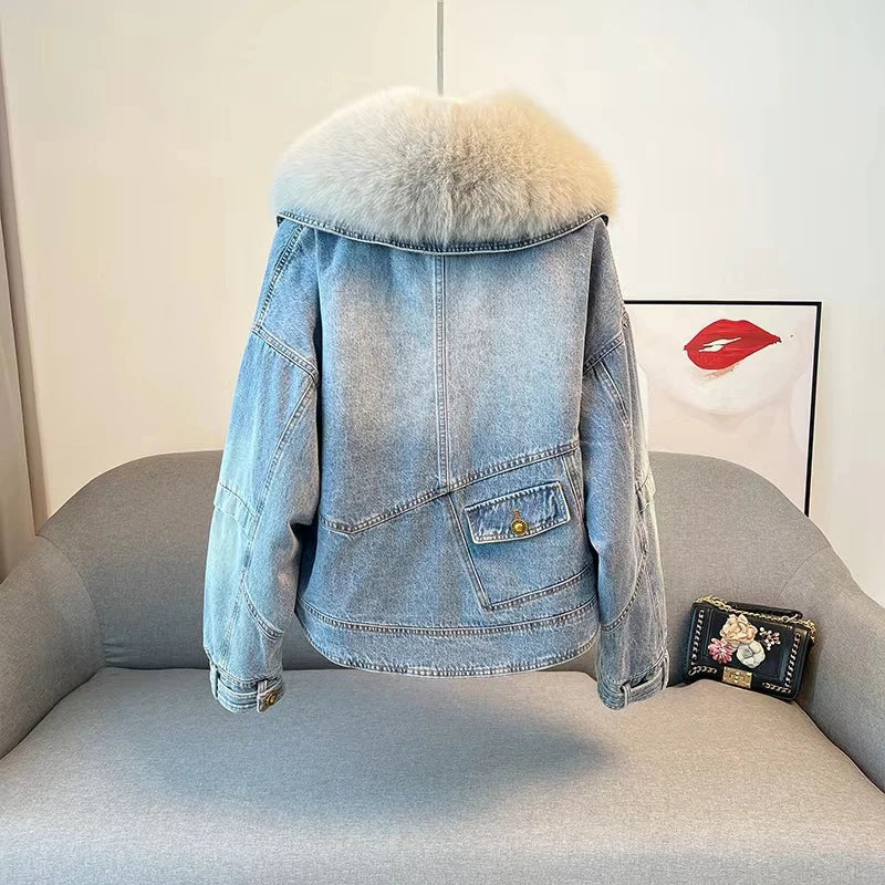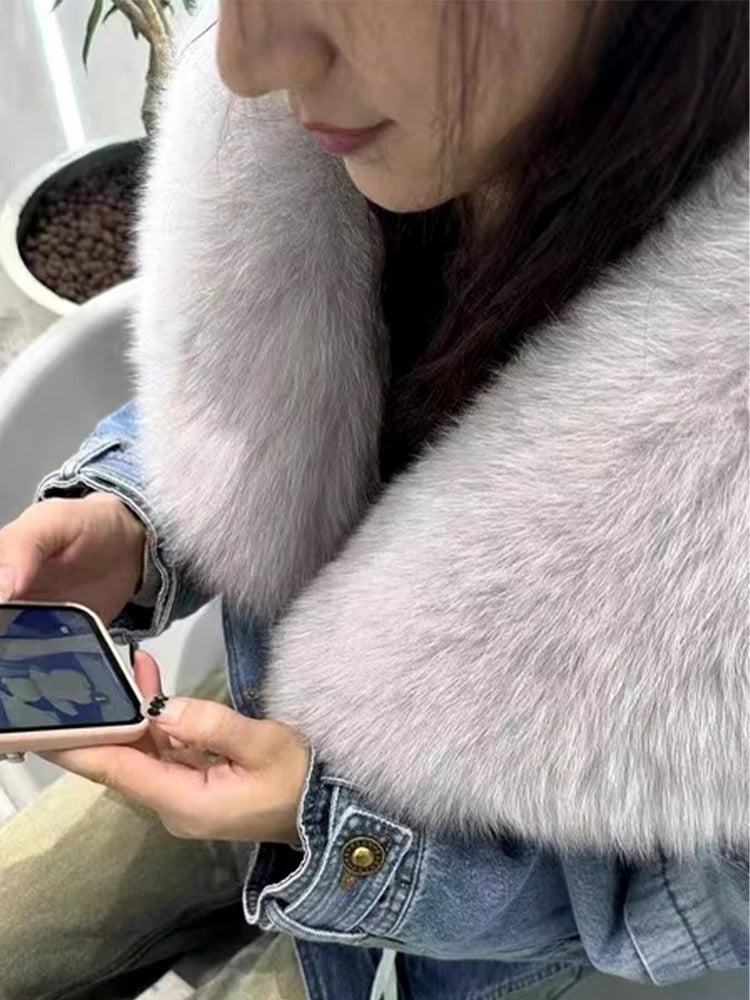 Womens Coats Spring New 100%Natural Real Fox Fur Collar Fashion Short Denim Jacket Luxury Goose Down Puffer Jackets Clothing