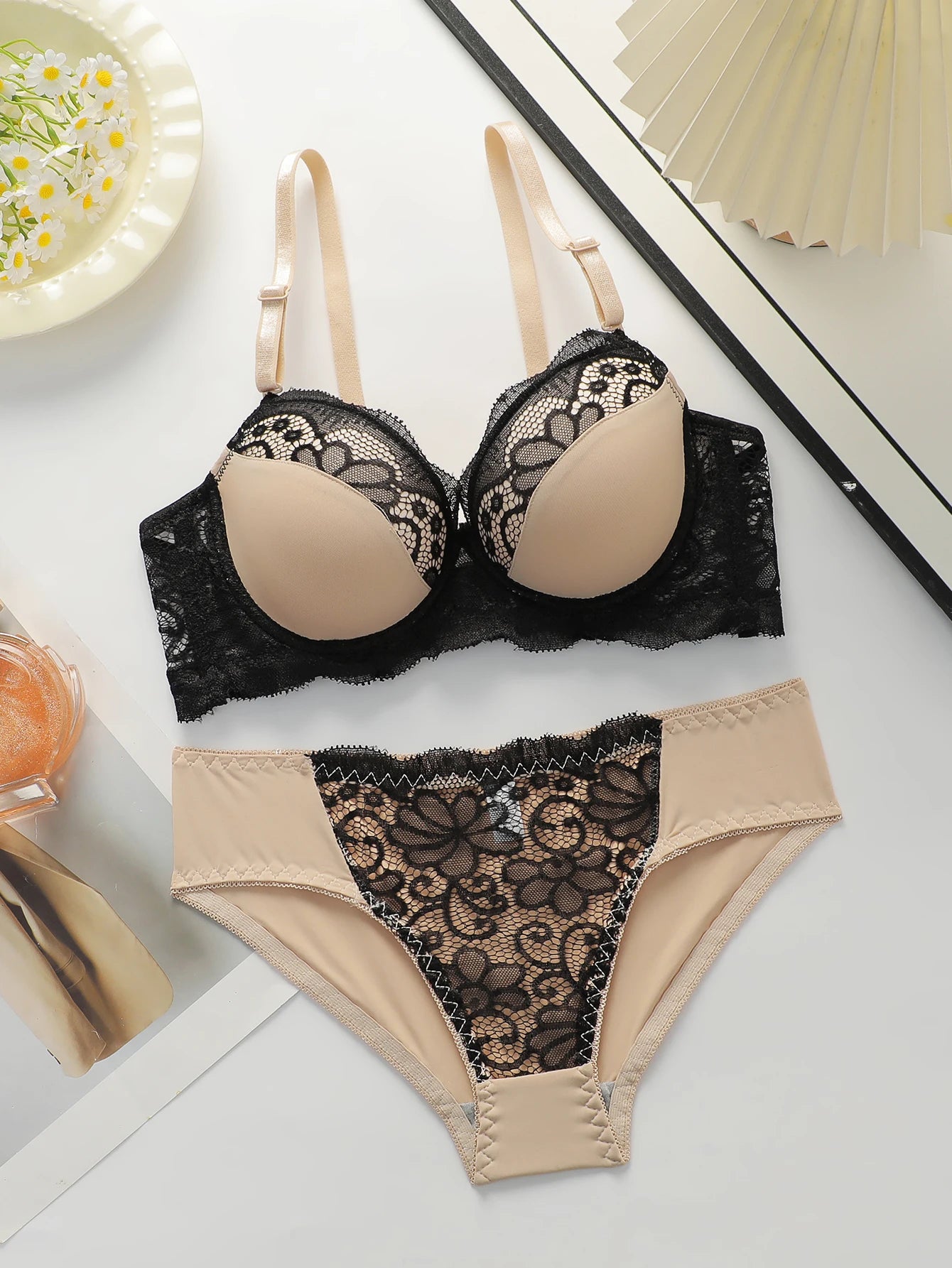 Women's sexy embroidered lace lingerie set with steel ring gathering push up daily casual close fitting bra set B2076