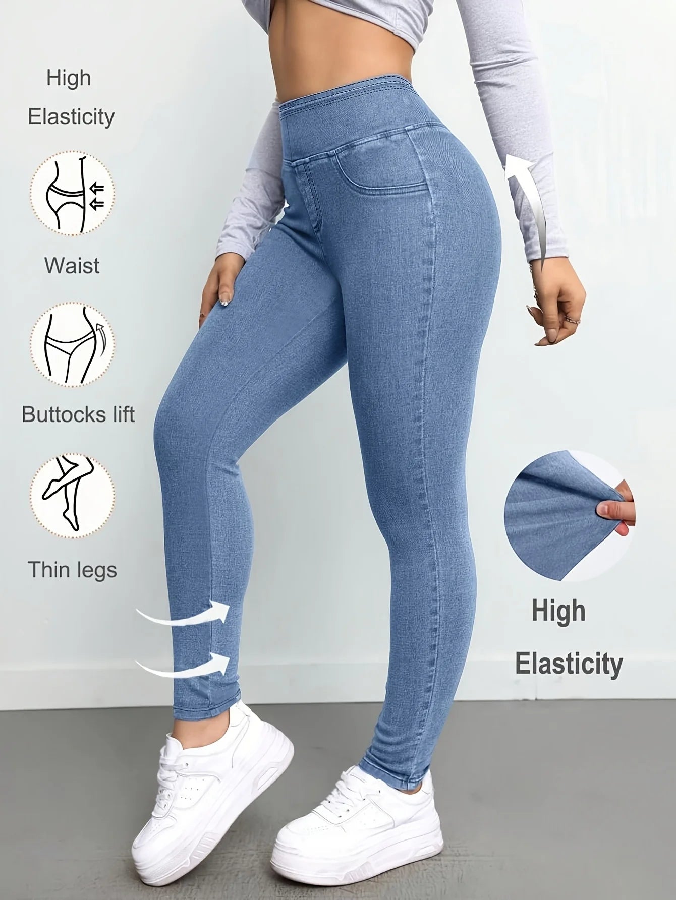 Women's Slim Fit Autumn Leggings with Full Length Denim-Look Floral Print Casual and Comfortable Workout Pants