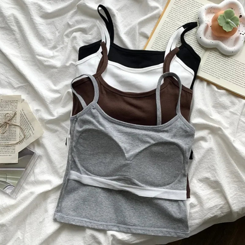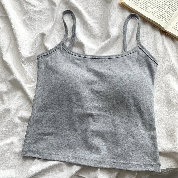 Women's Solid Color Spaghetti Straps Sleeveless Slim Camisole with Chest Pad Cotton Summer Wear Outside Female Short Tops Vests