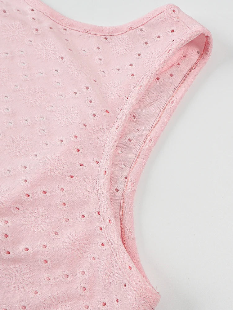 Women's Solid Colour Burned Flower Embroidery Ruffled Hem Mini Sleeveless Dress Elegant, Sensual, Pink Girly Style