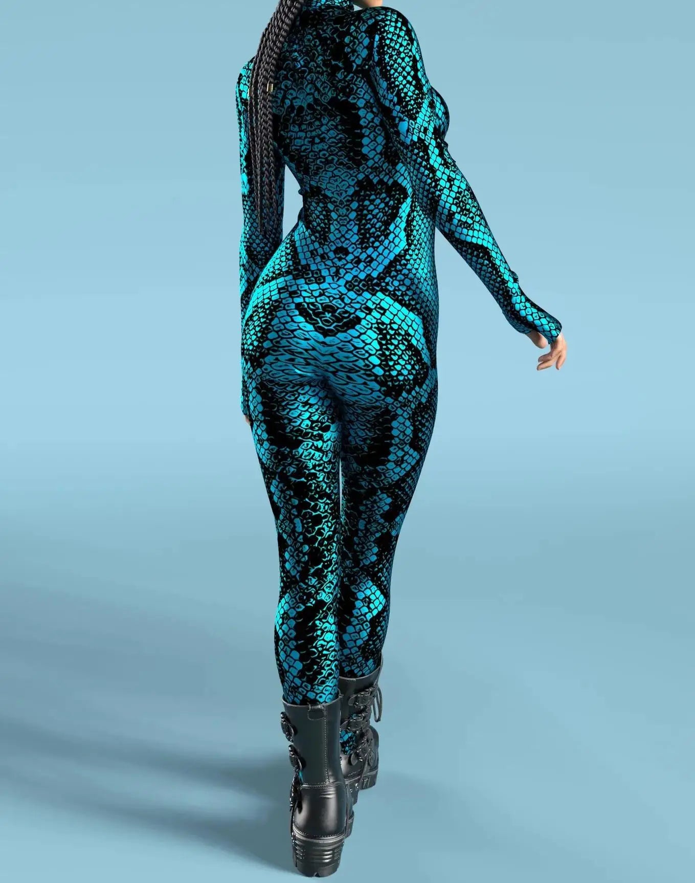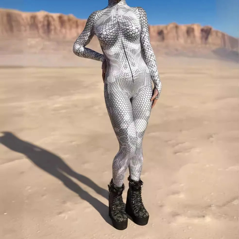 Women's Stylish Green Snake Print BodySuit New Halloween Adult Cosplay Jumpsuit Colorful 3D Printing Carnival Party Rave Outfits