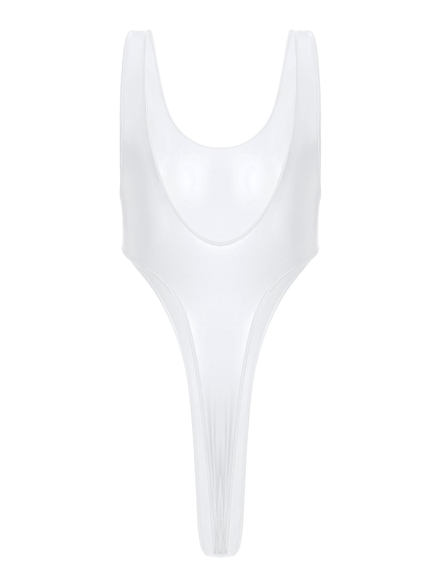 Womens Swimsuit 2022 New Glossy One-piece Swimming Bathing Suit Backless High Cut Bodysuit Sportwear Beachwear Swimwear