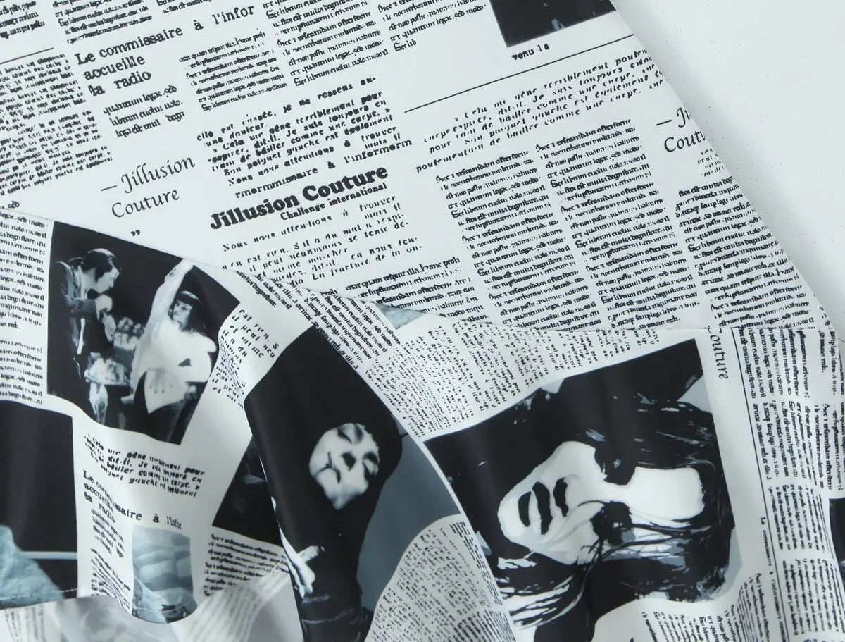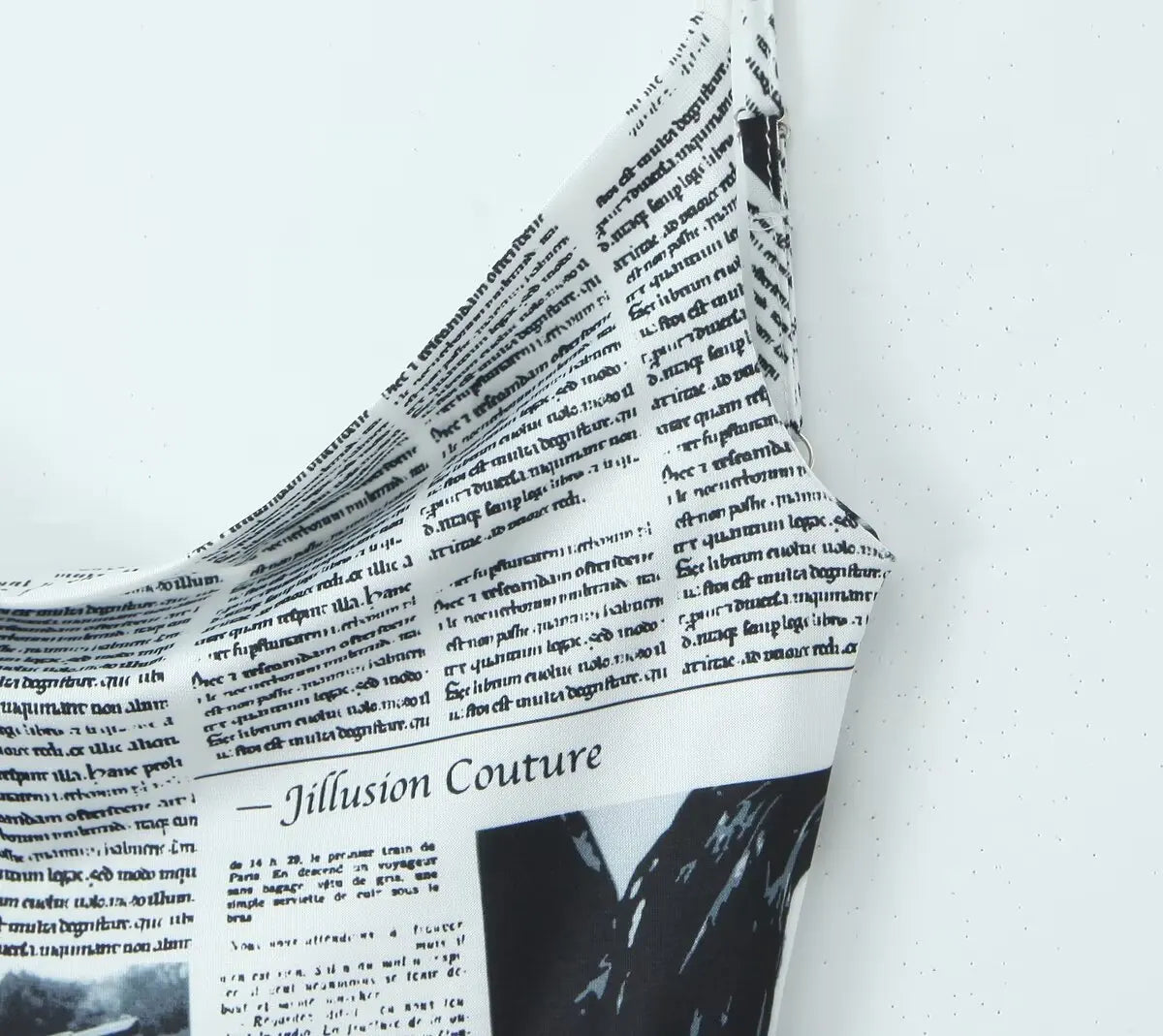 YENKYE New Women Newspaper Letter Print Irregular Hem Sling Dresses Fashion Backless Thin Straps With Chain Summer Sexy Dress