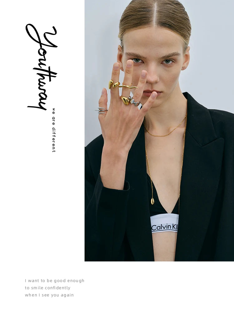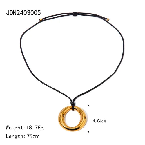 Youthway Trendy Stainless Steel Waterproof Irregular Geometric Metal Wax Rope Necklace Gold Silver For Women Jewelry Gift